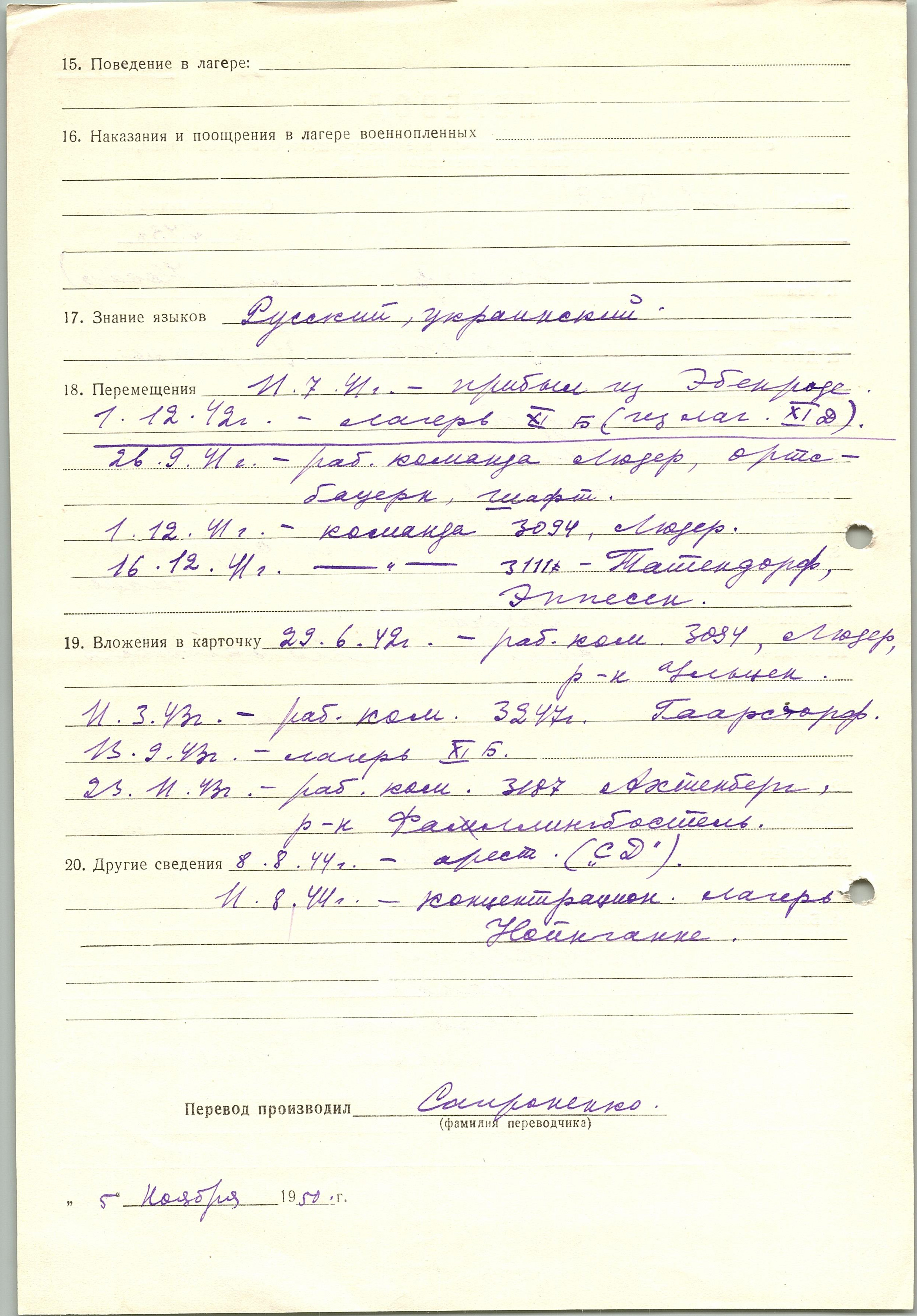 Военнопленные, трофейные карточки. Киевская обл.