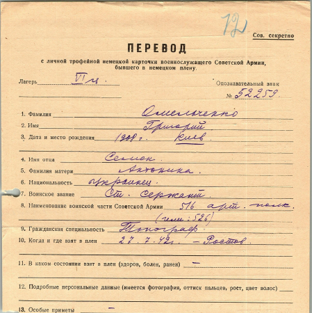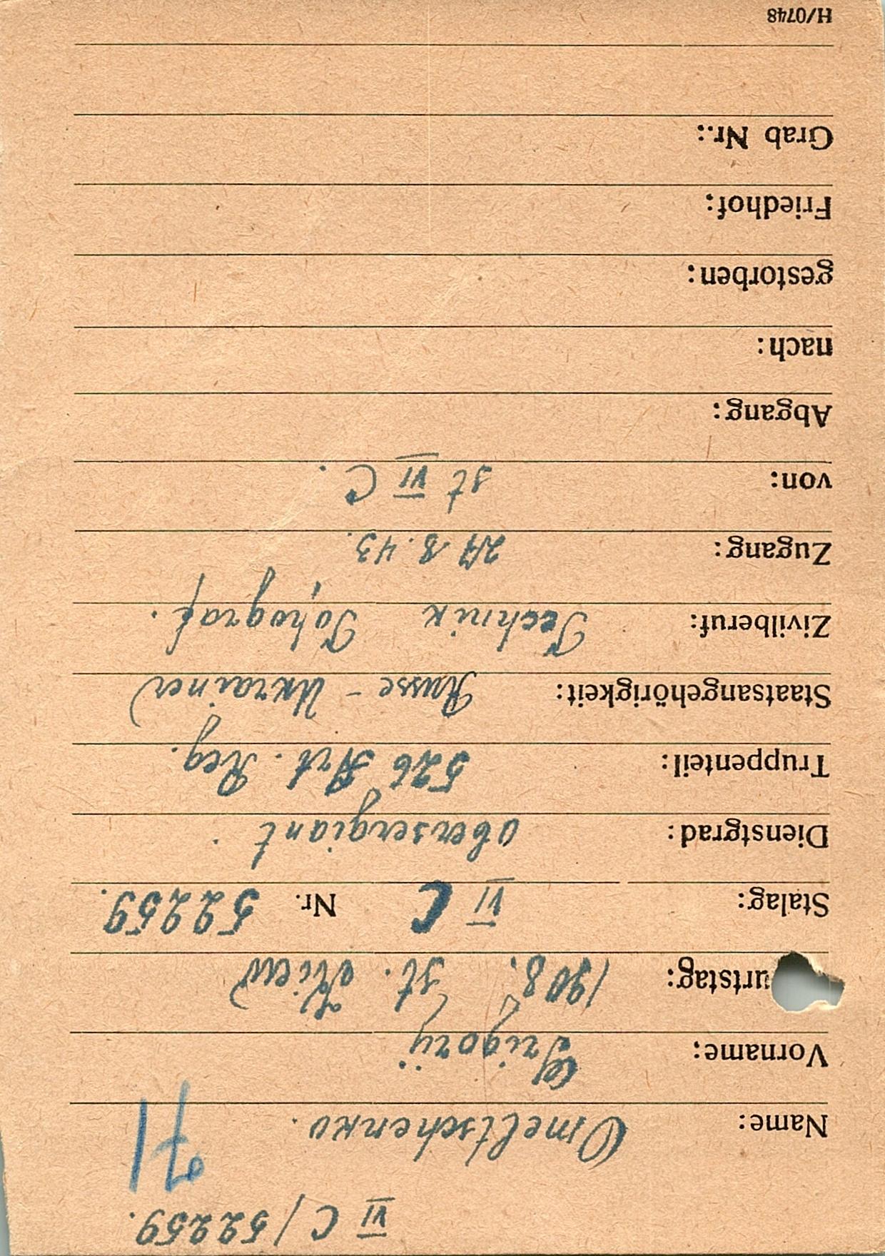 Военнопленные, трофейные карточки. Киевская обл.