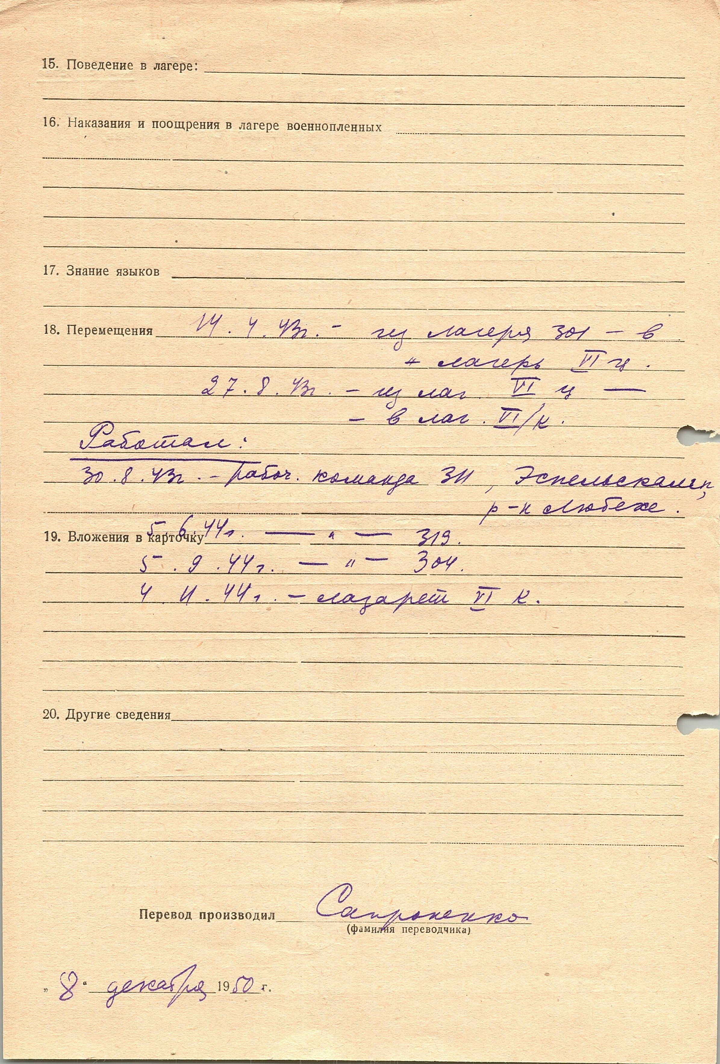 Военнопленные, трофейные карточки. Киевская обл.