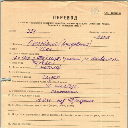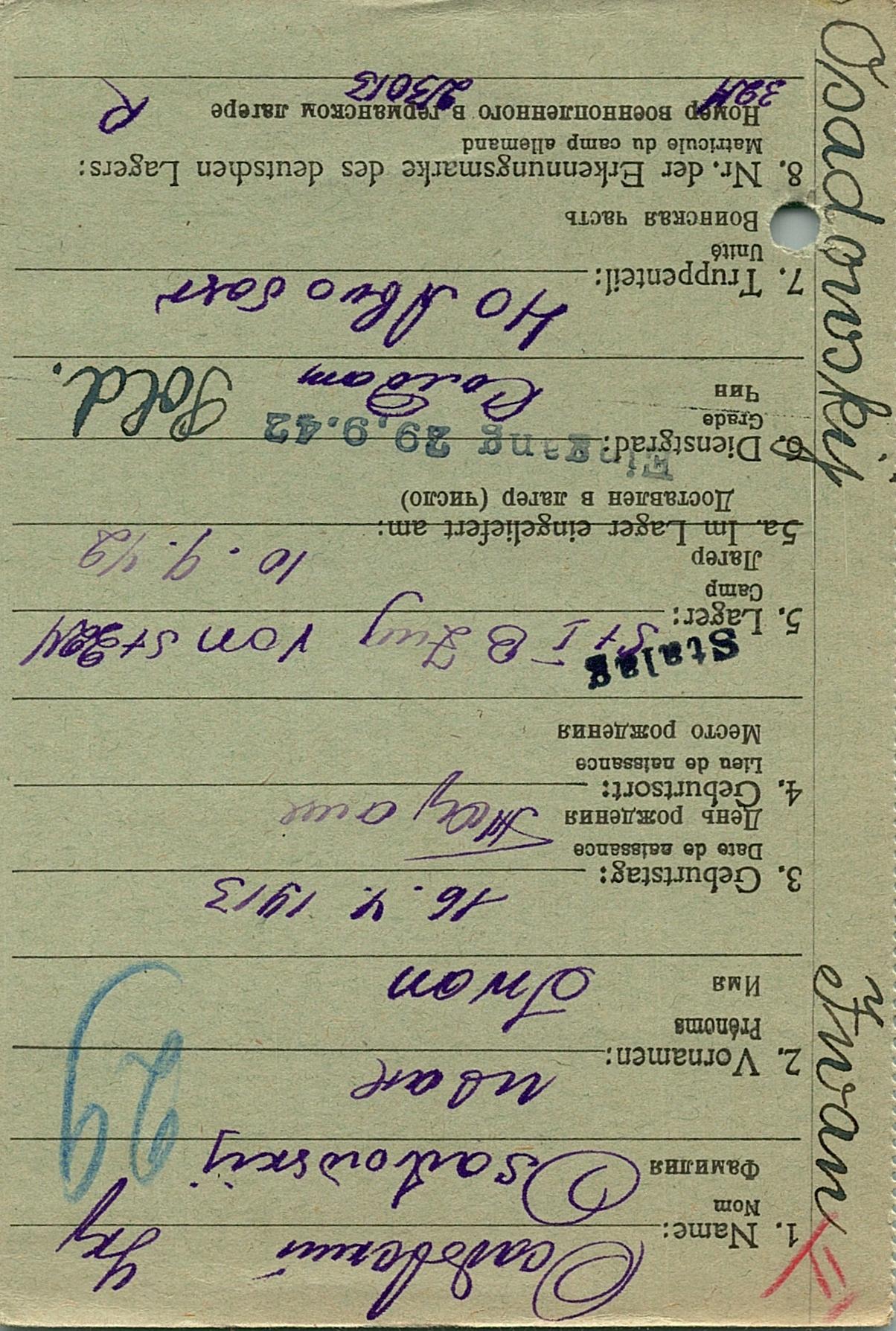 Военнопленные, трофейные карточки. Киевская обл.
