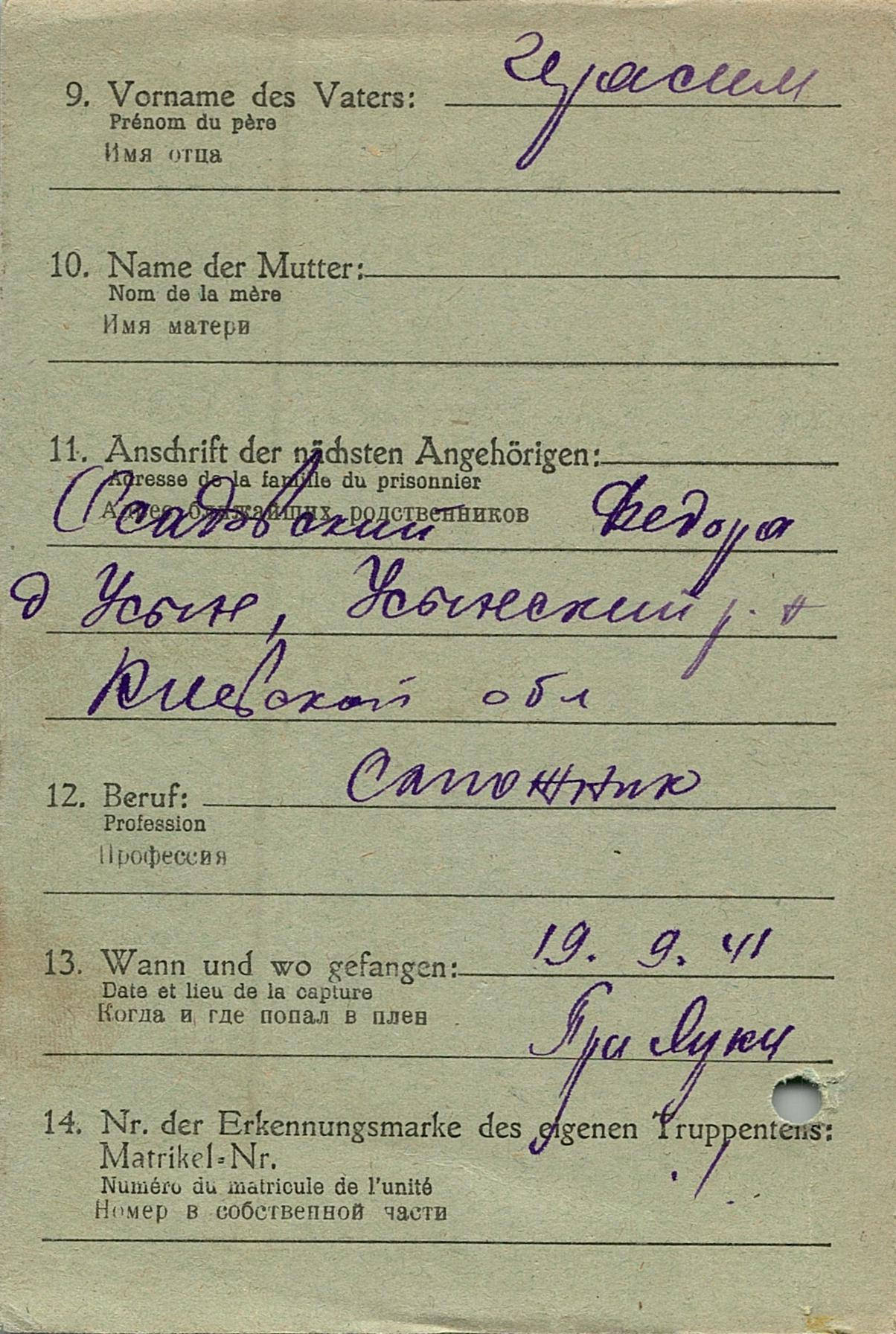 Военнопленные, трофейные карточки. Киевская обл.