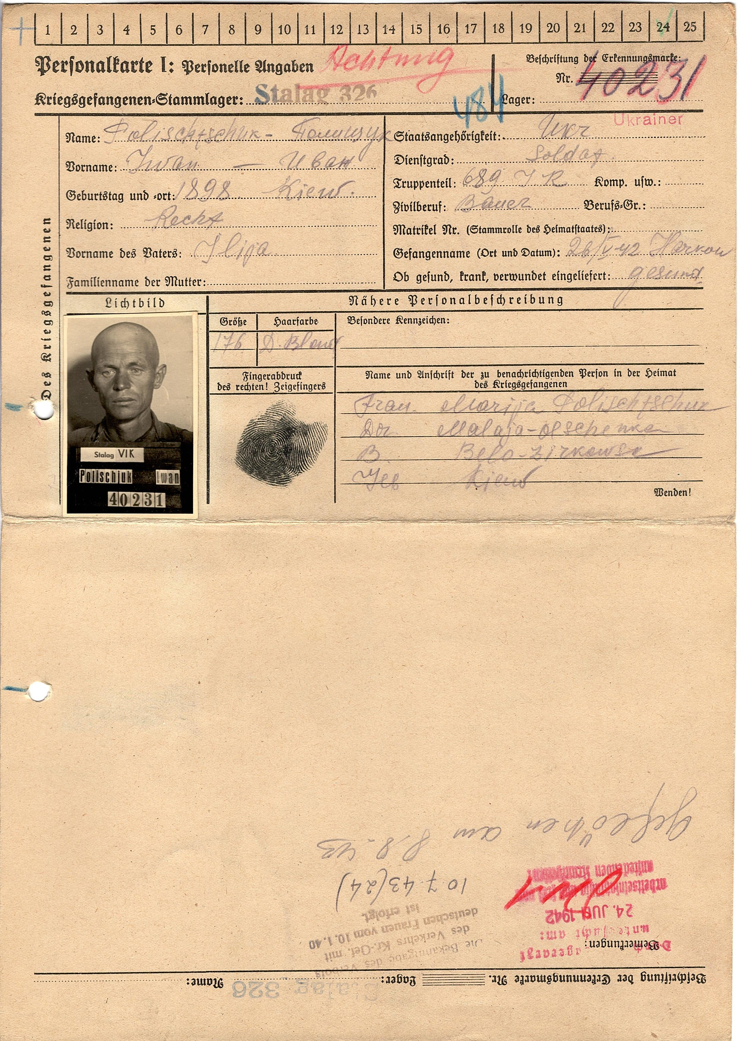 Военнопленные, трофейные карточки. Киевская обл.