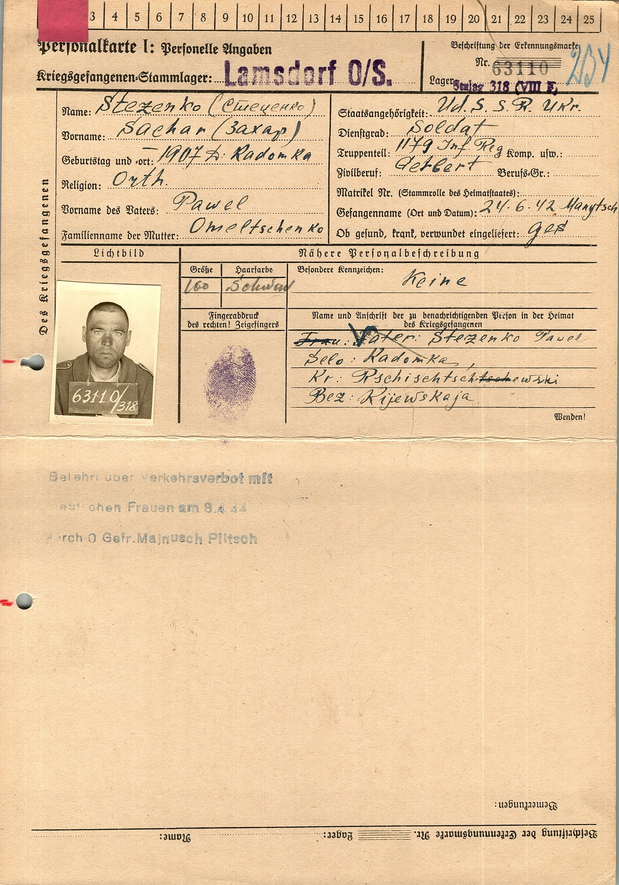 Военнопленные, трофейные карточки. Киевская обл.