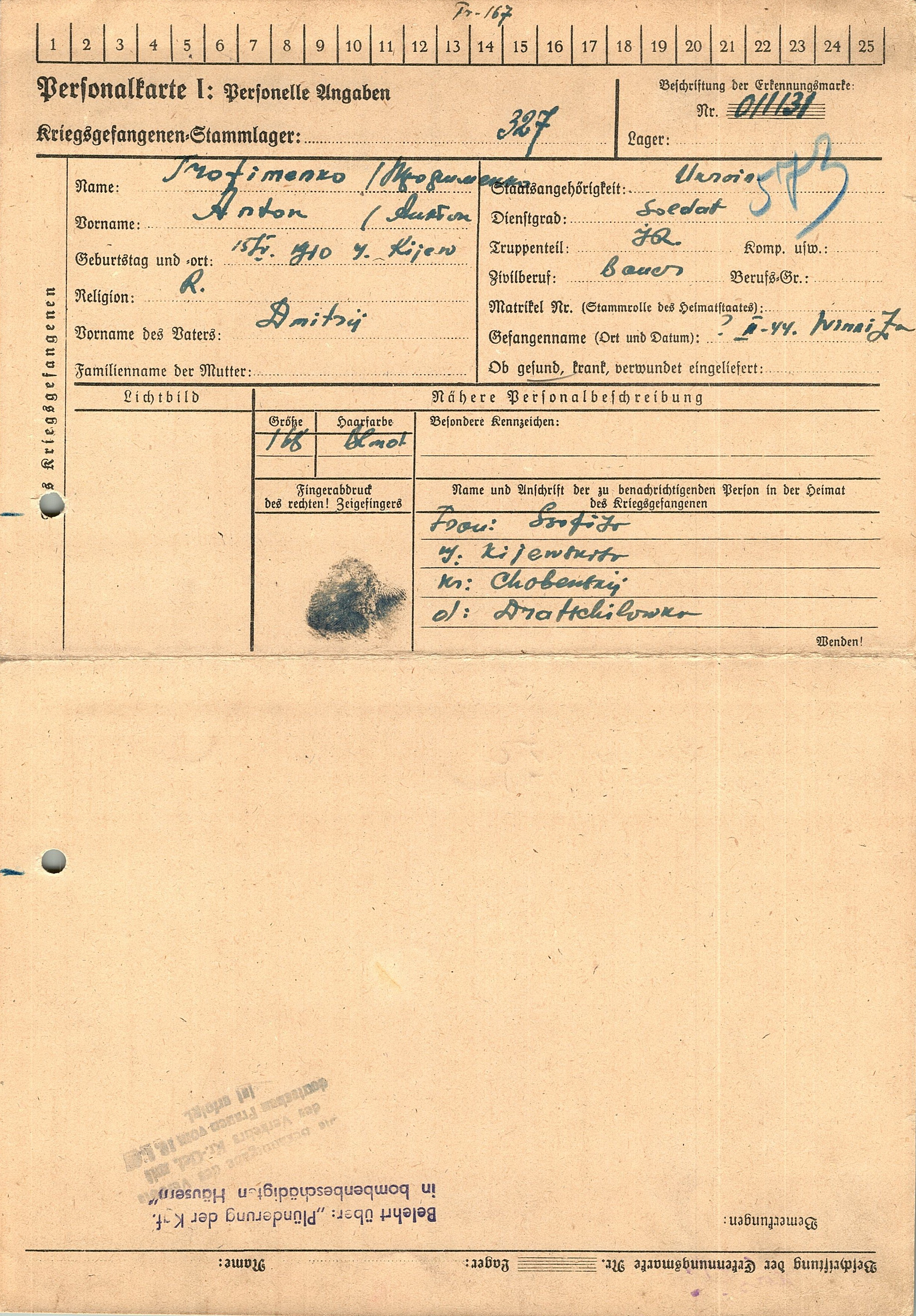 Военнопленные, трофейные карточки. Киевская обл.