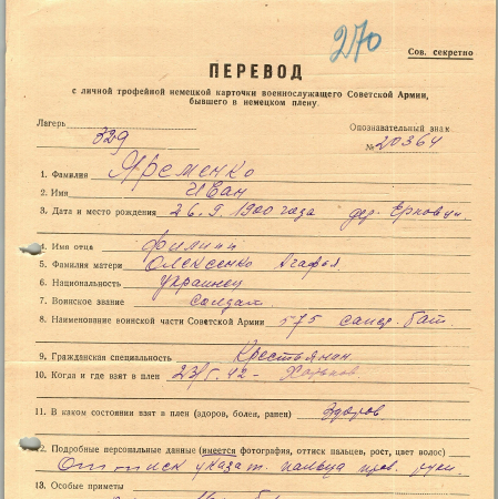 Военнопленные, трофейные карточки. Киевская обл.