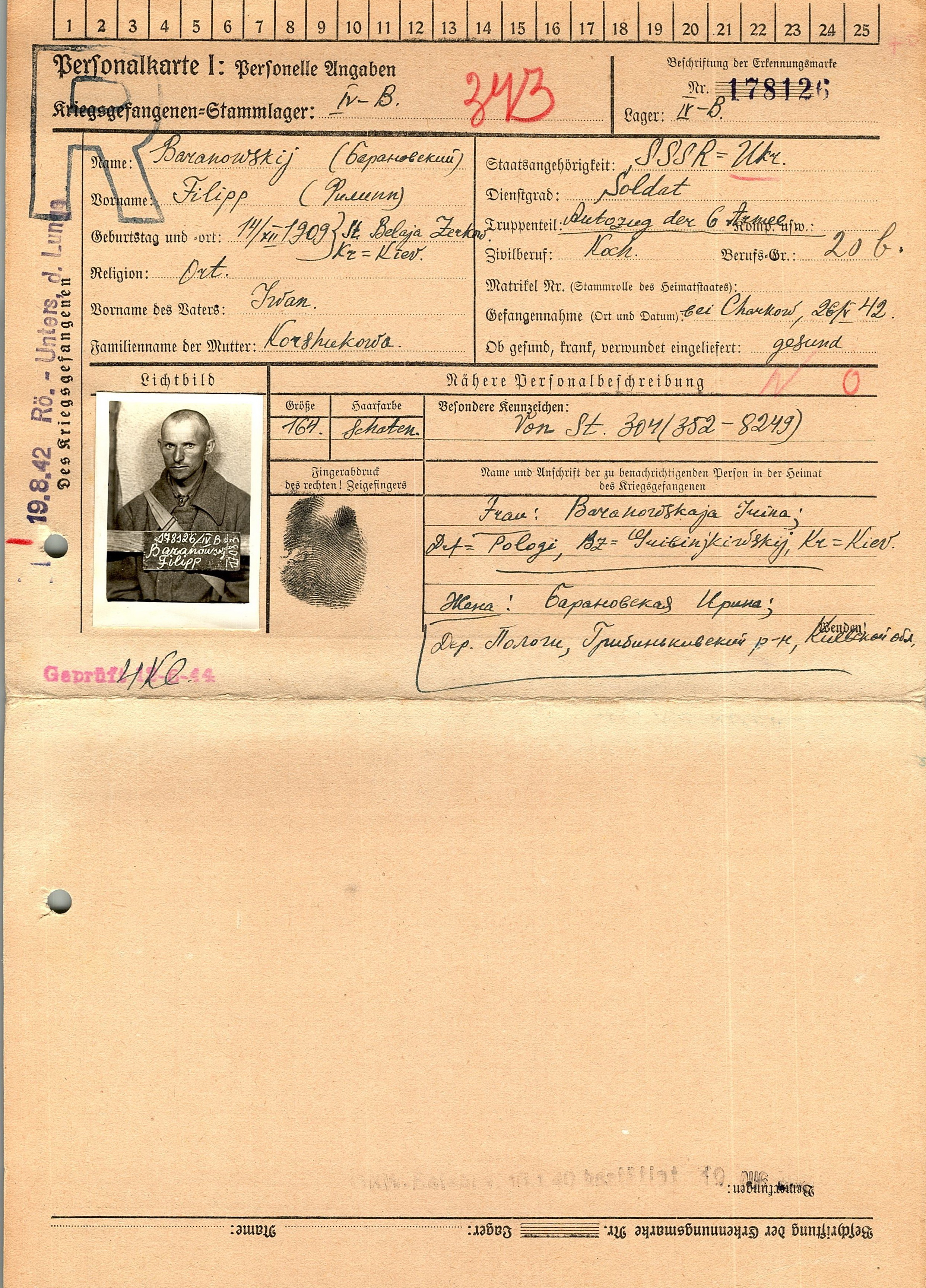 Военнопленные, трофейные карточки. Киевская обл.