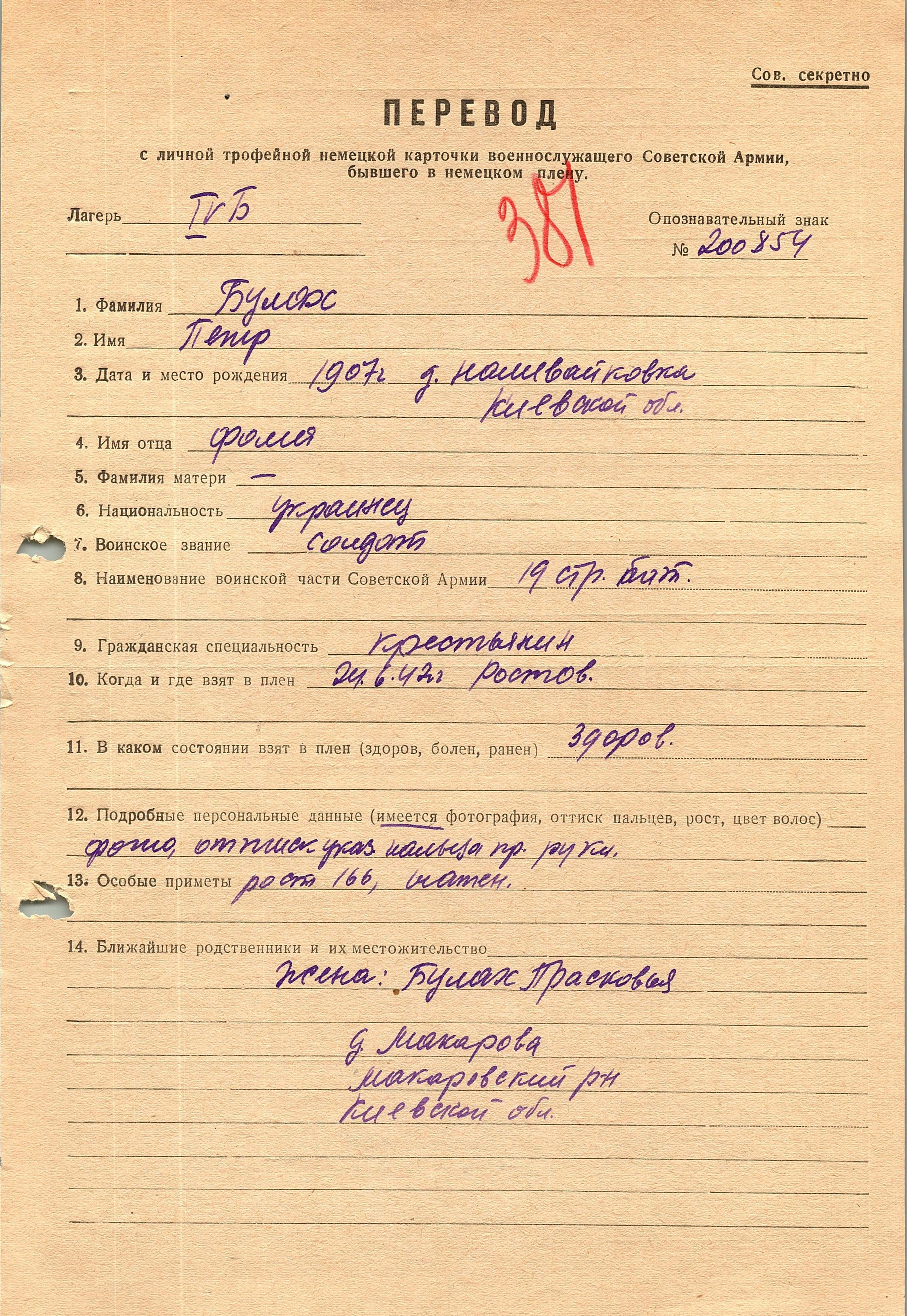 Военнопленные, трофейные карточки. Киевская обл.