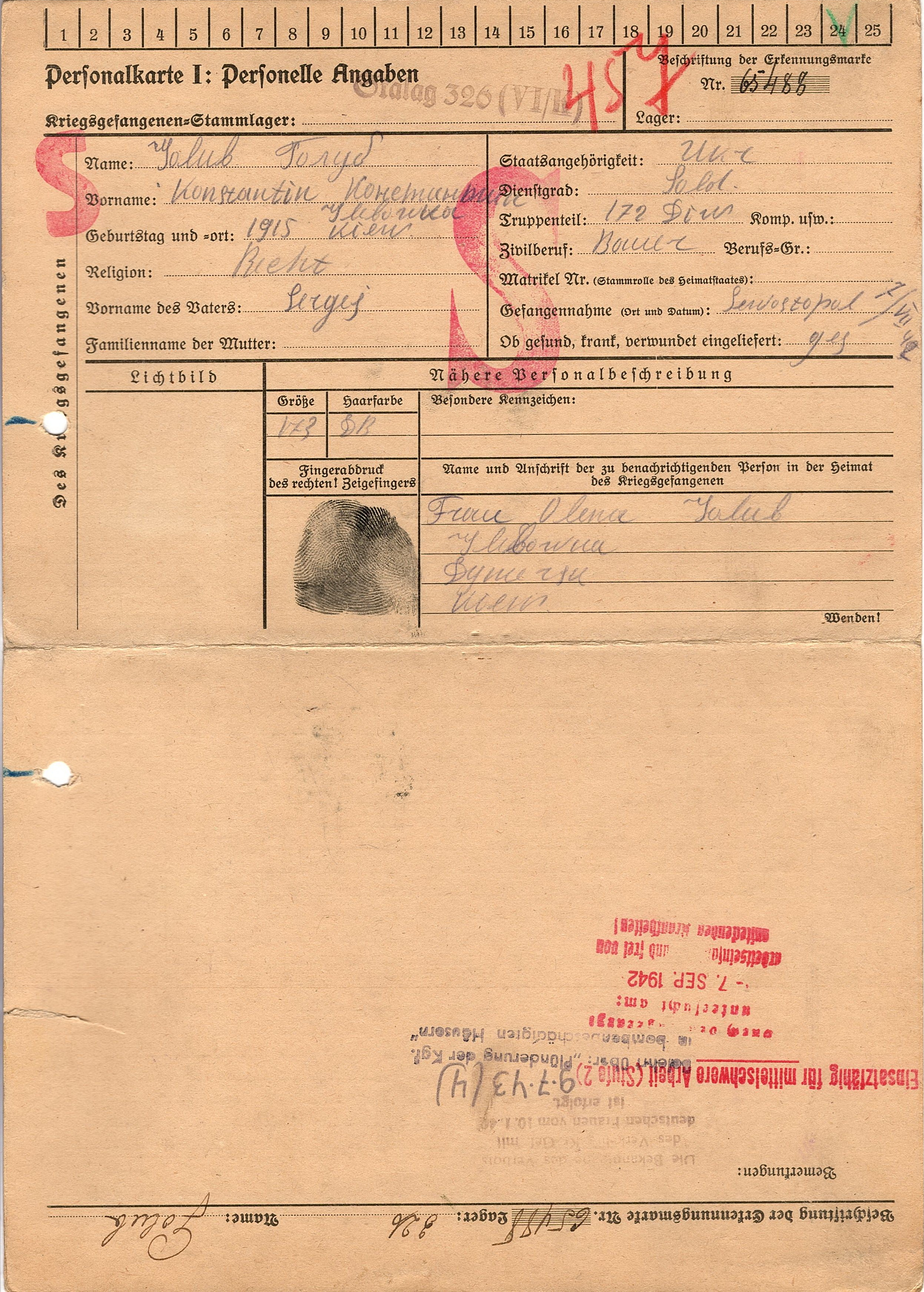 Военнопленные, трофейные карточки. Киевская обл.