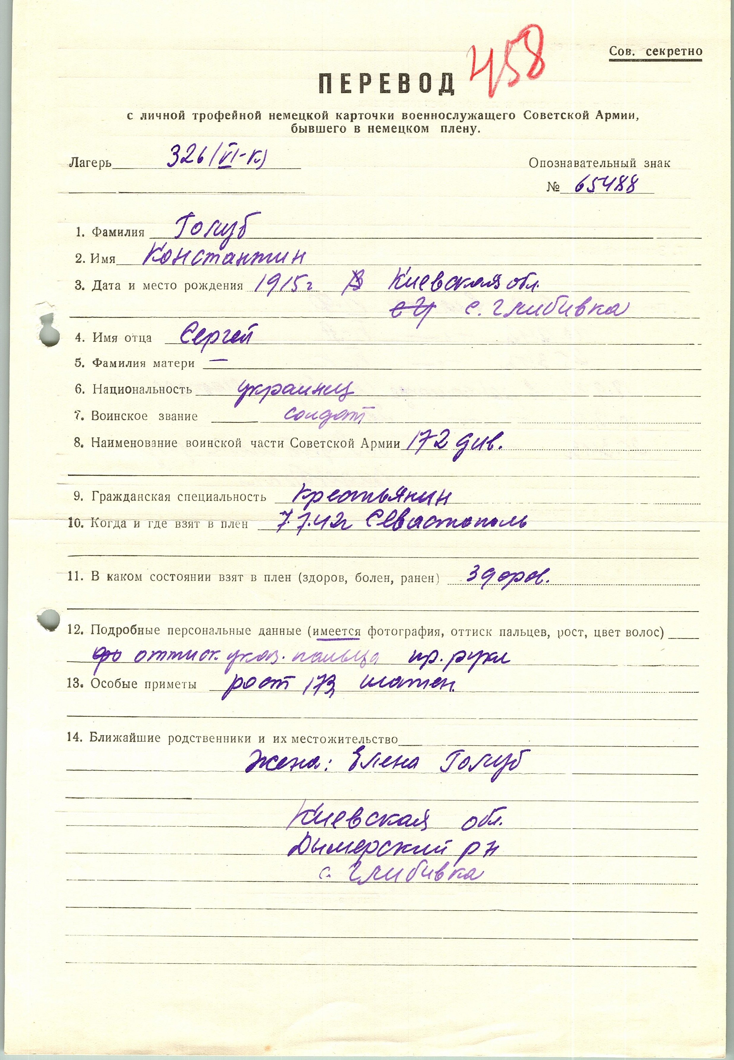 Военнопленные, трофейные карточки. Киевская обл.
