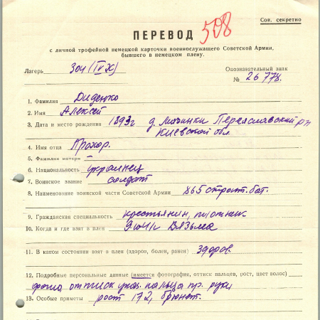 Военнопленные, трофейные карточки. Киевская обл.