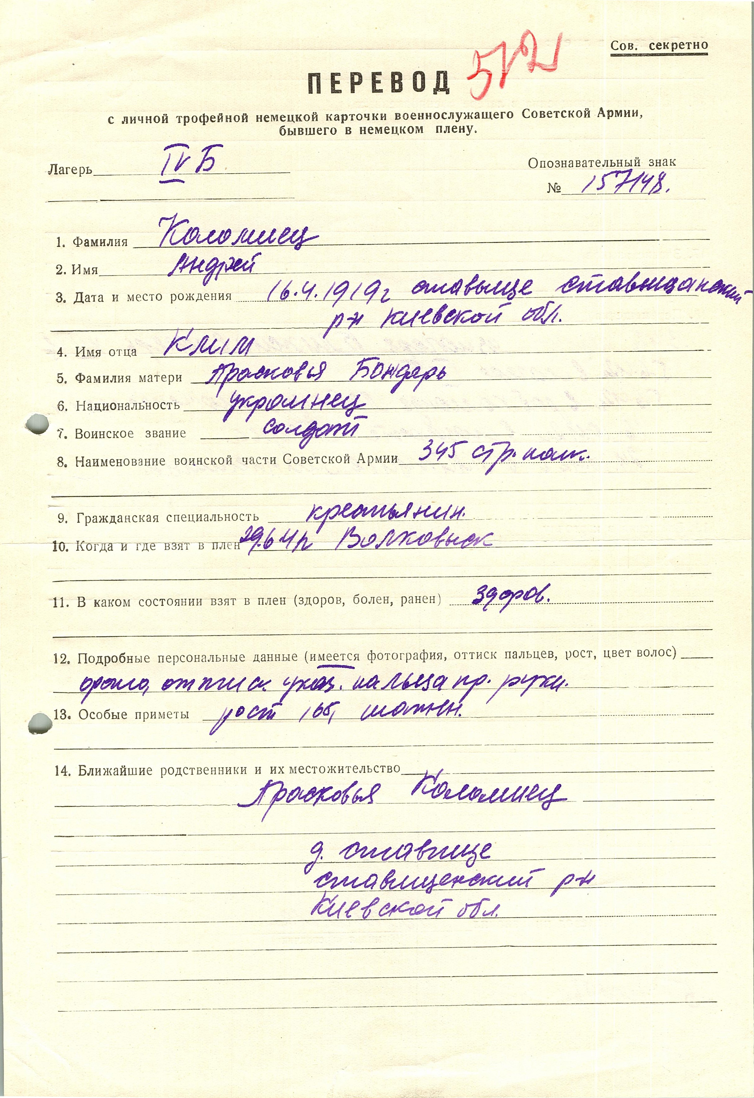 Военнопленные, трофейные карточки. Киевская обл.