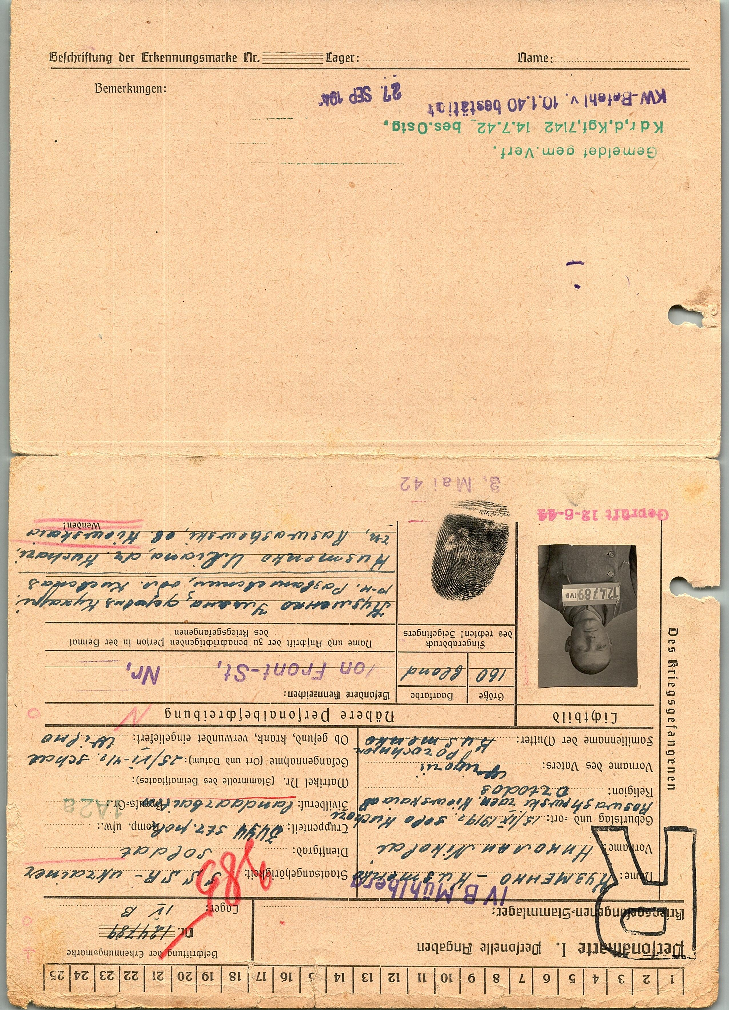 Военнопленные, трофейные карточки. Киевская обл.