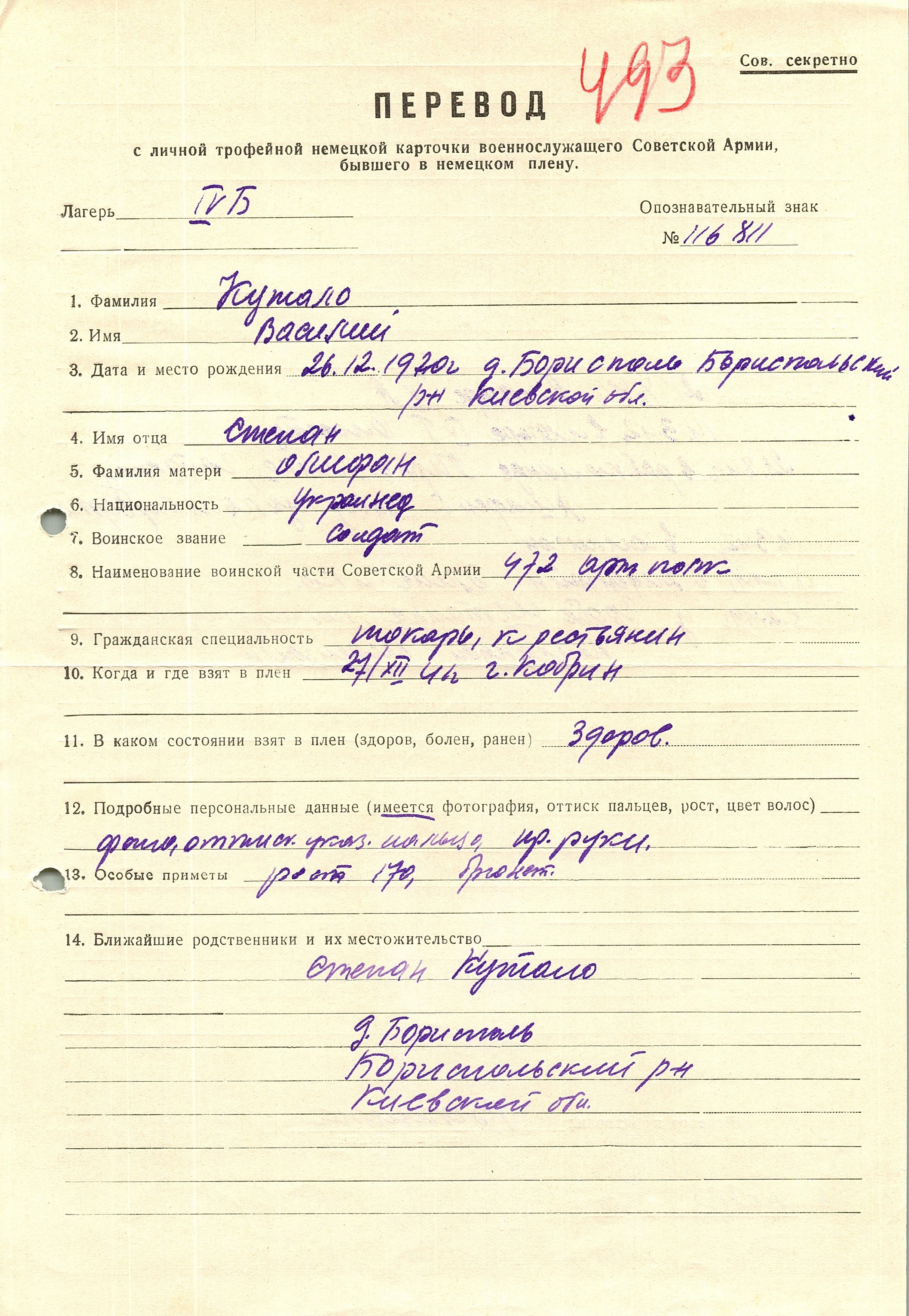 Военнопленные, трофейные карточки. Киевская обл.