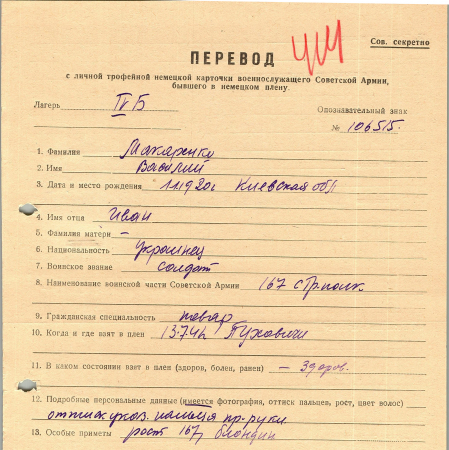 Военнопленные, трофейные карточки. Киевская обл.