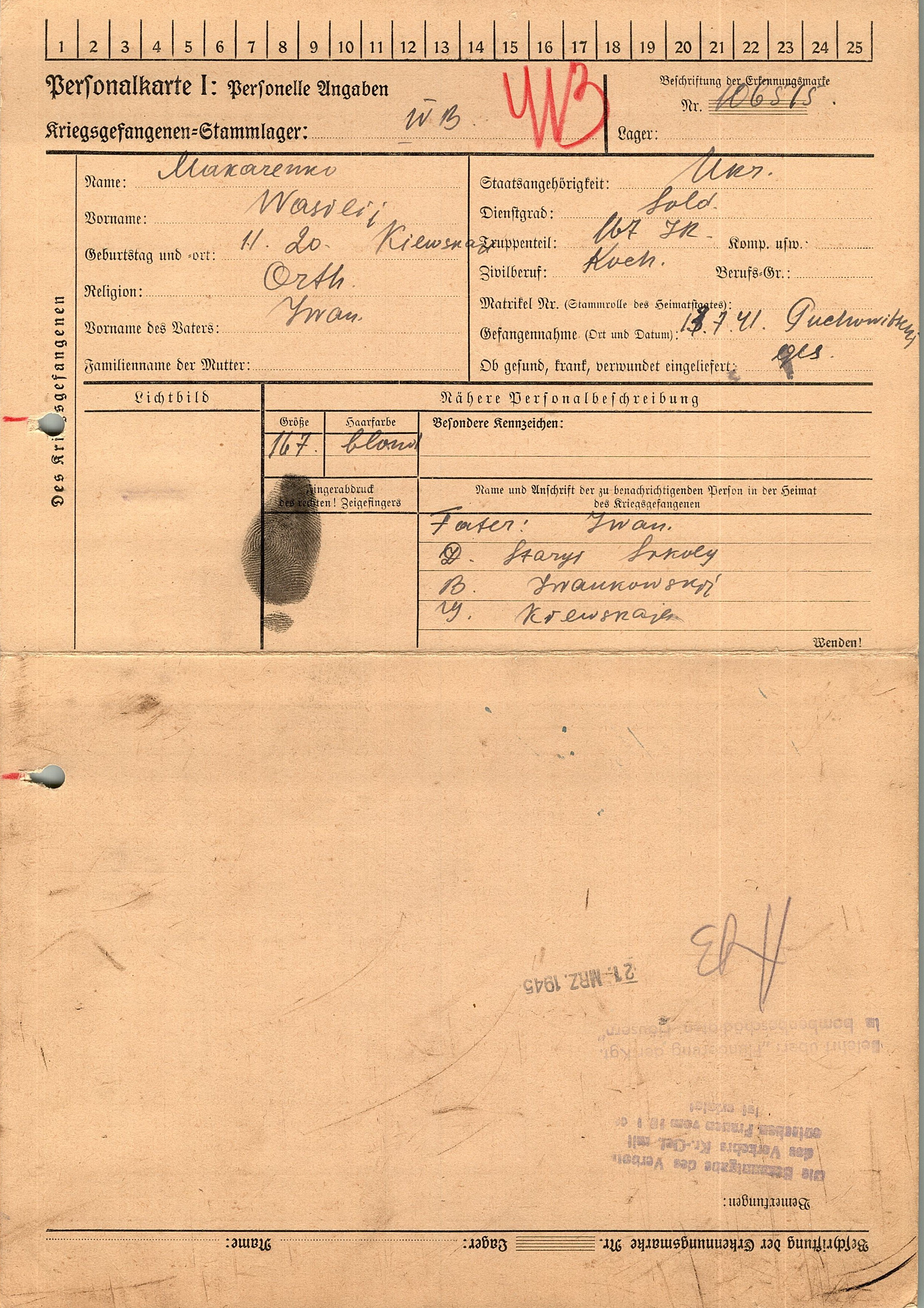Военнопленные, трофейные карточки. Киевская обл.