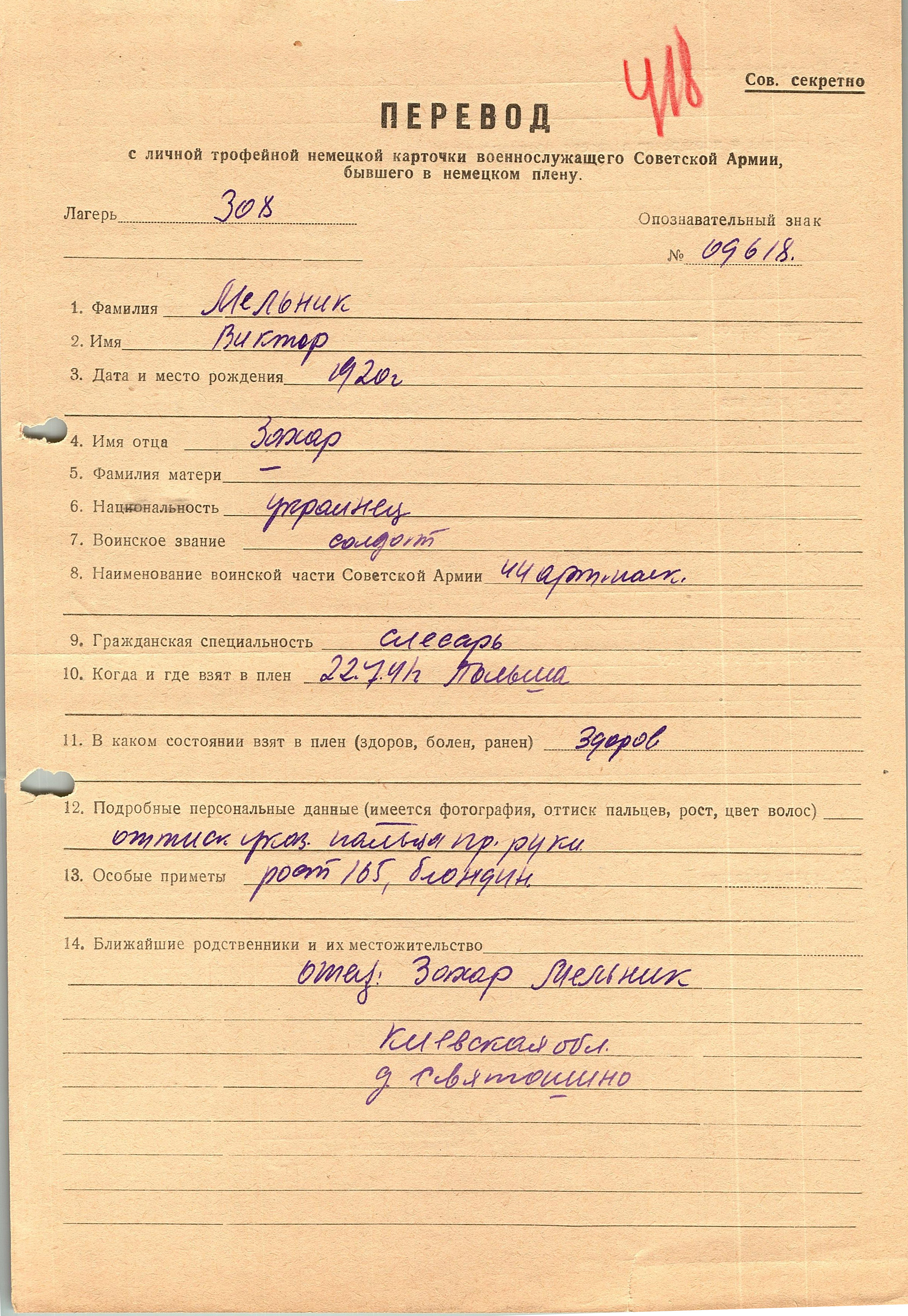 Военнопленные, трофейные карточки. Киевская обл.