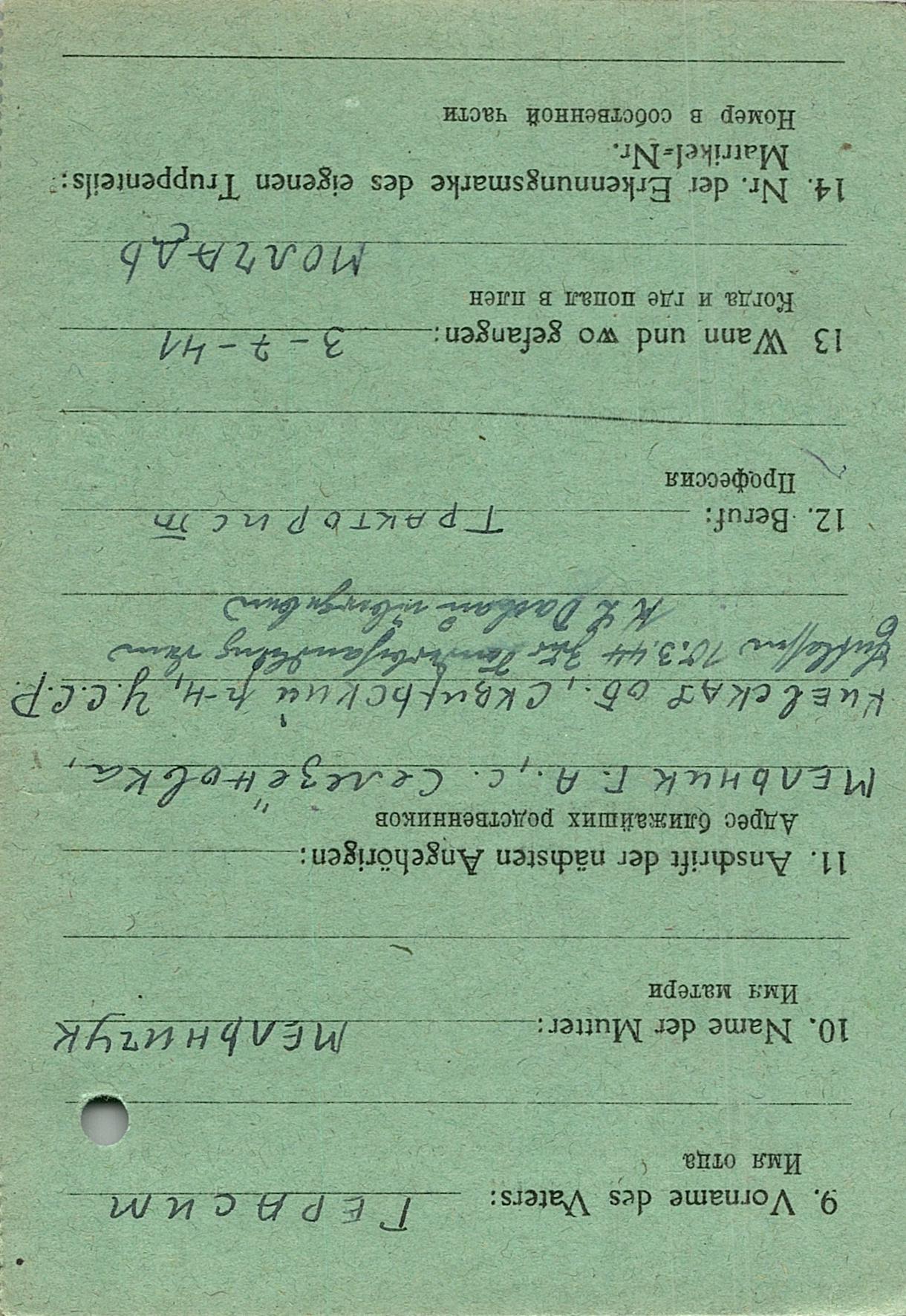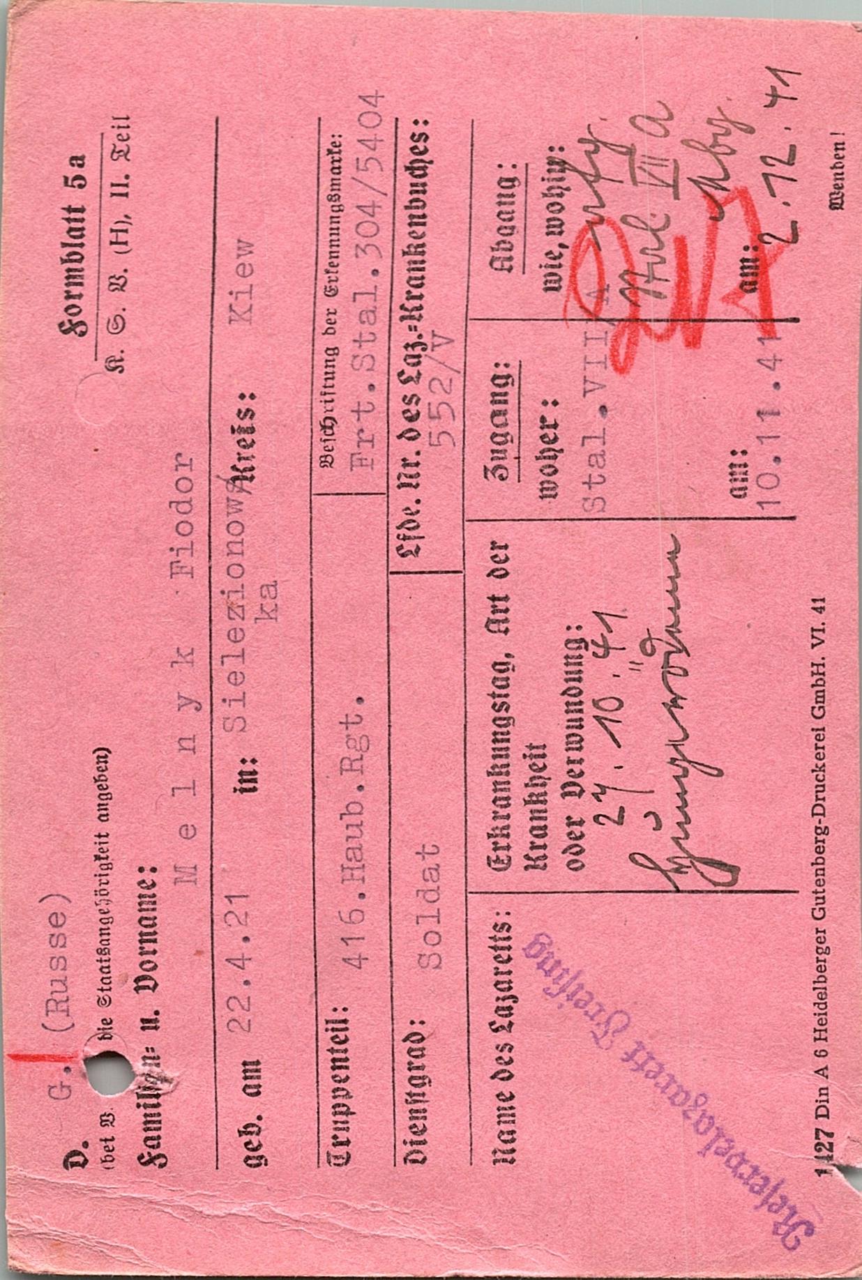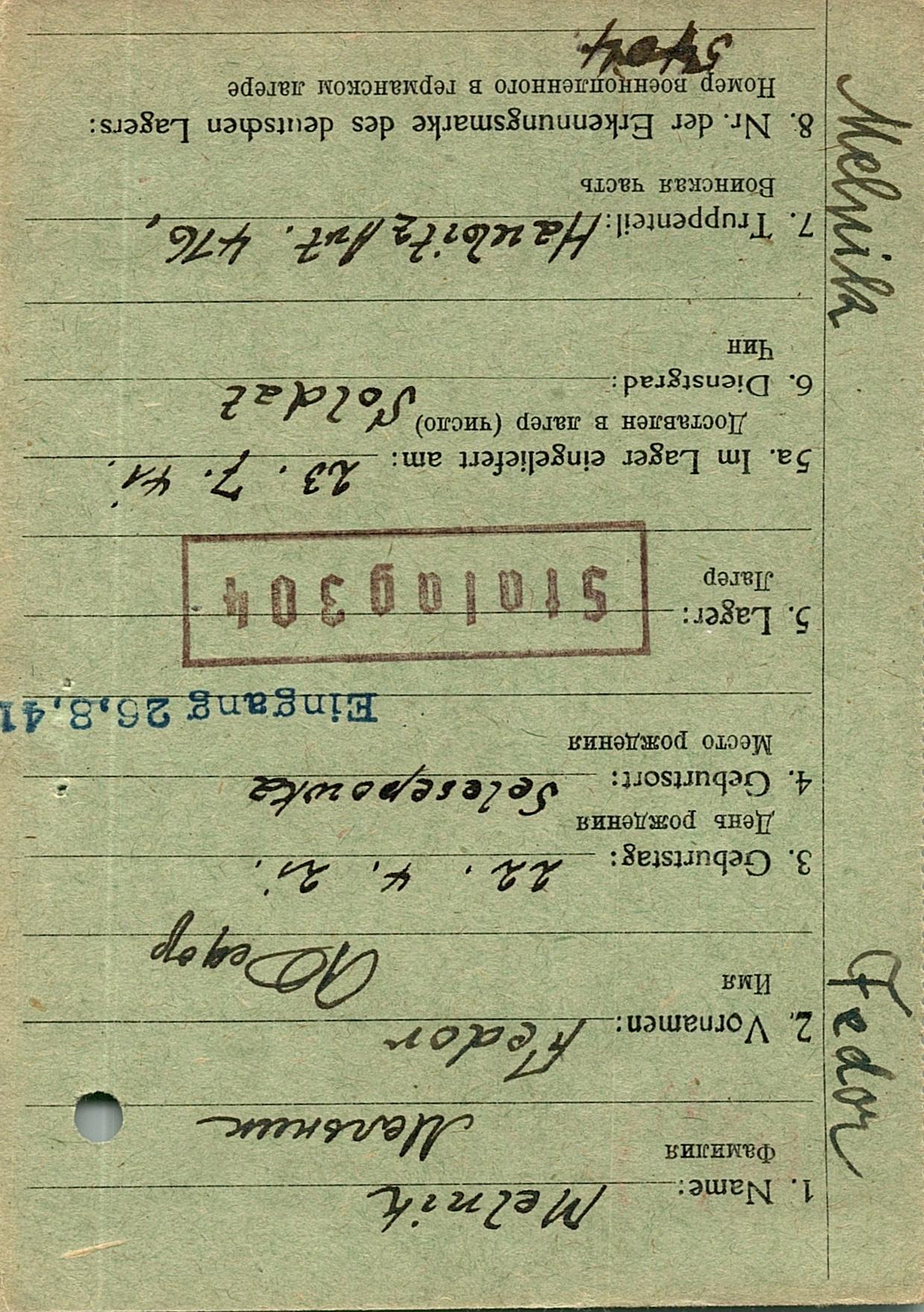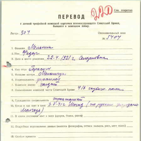 Военнопленные, трофейные карточки. Киевская обл.