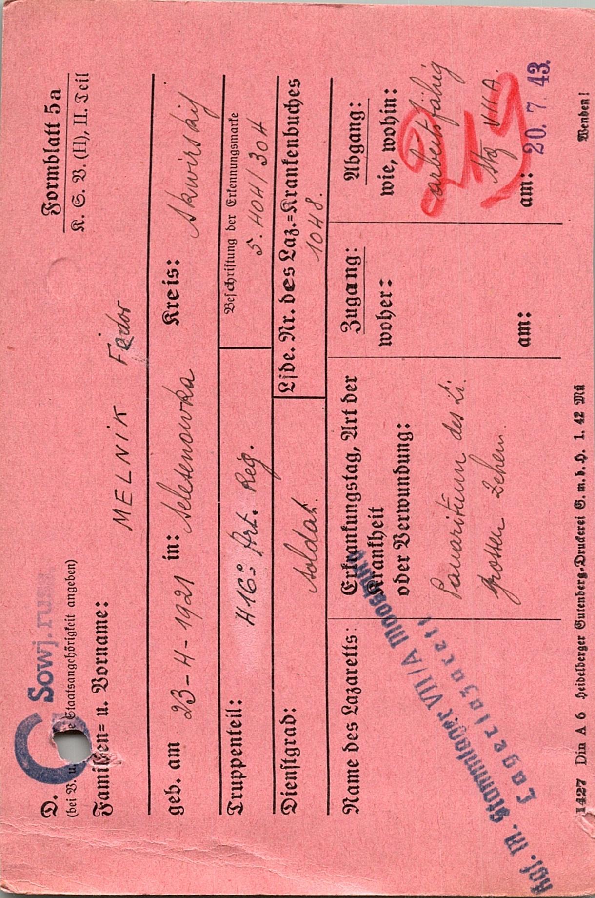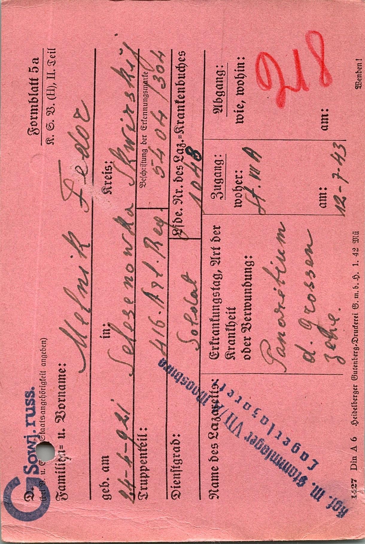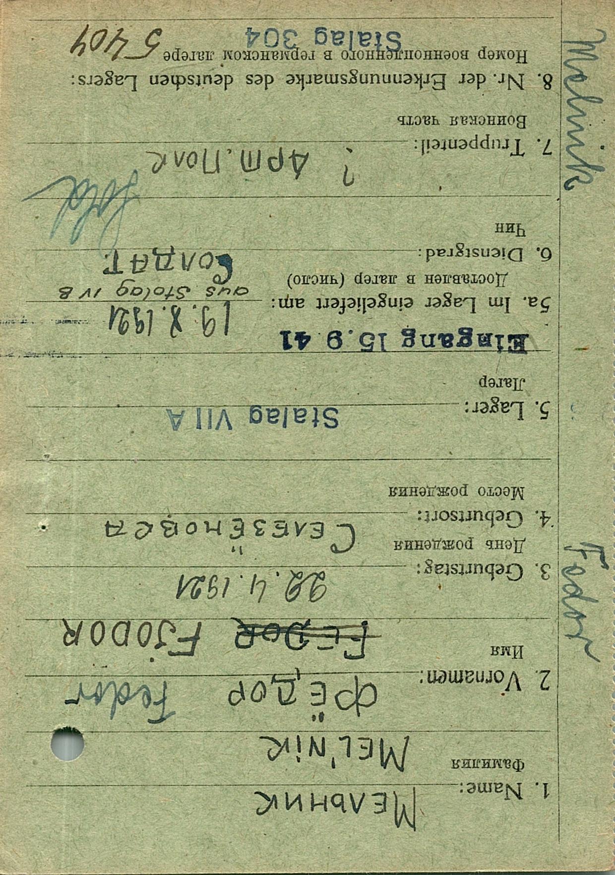 Военнопленные, трофейные карточки. Киевская обл.