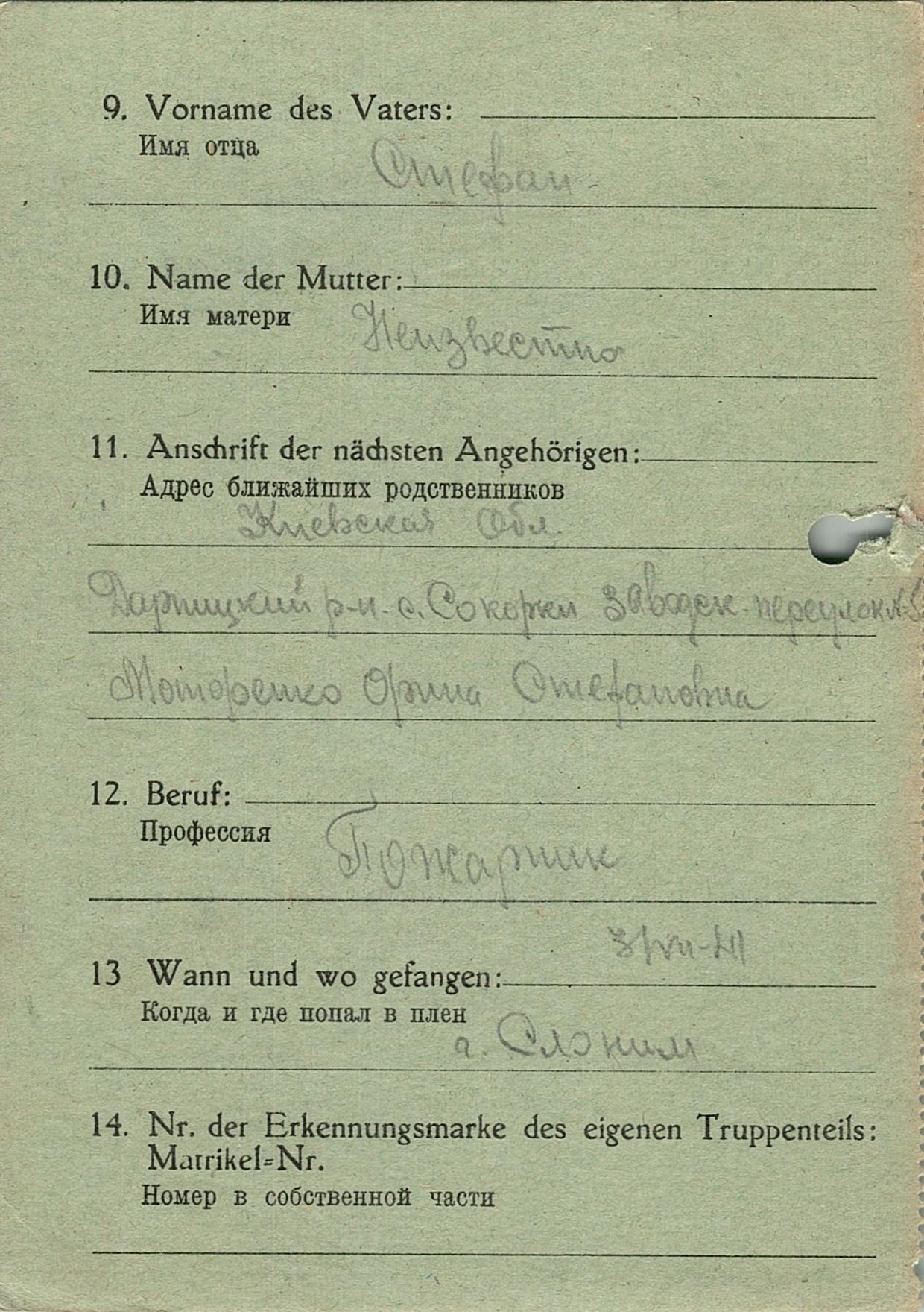 Военнопленные, трофейные карточки. Киевская обл.
