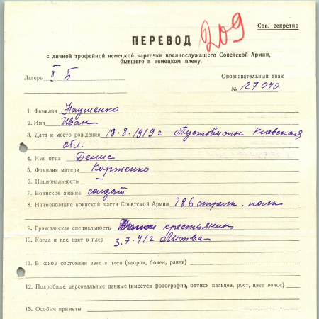 Военнопленные, трофейные карточки. Киевская обл.