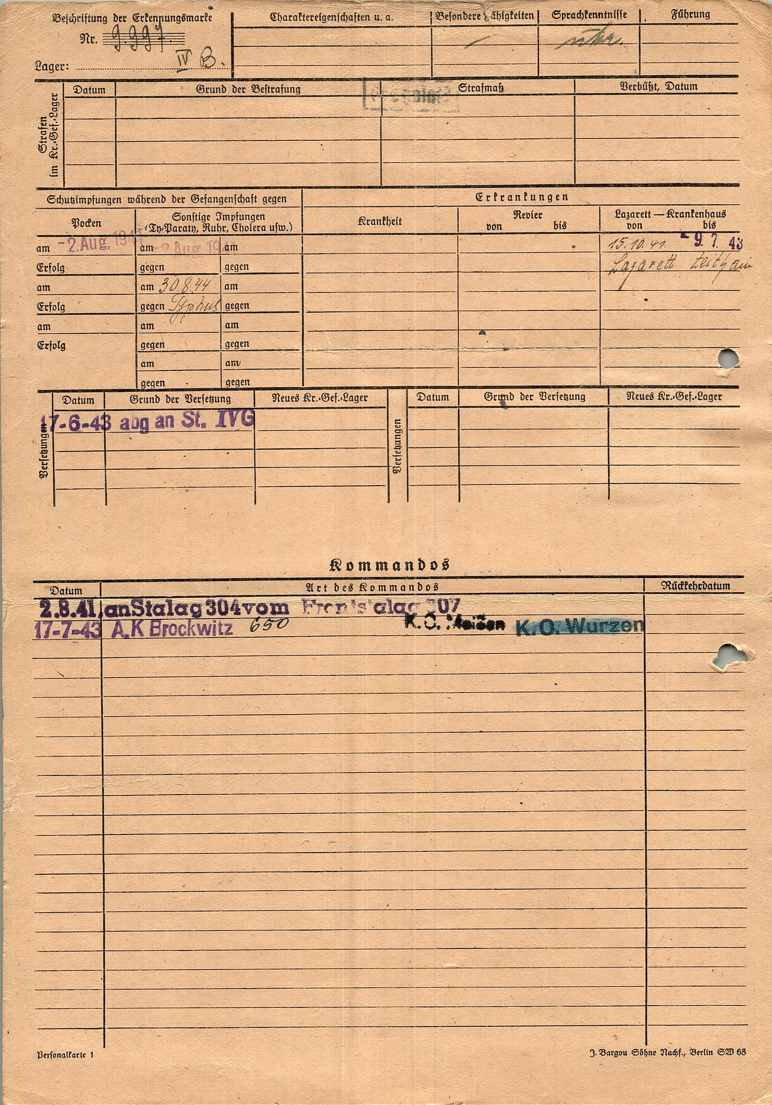 Военнопленные, трофейные карточки. Киевская обл.