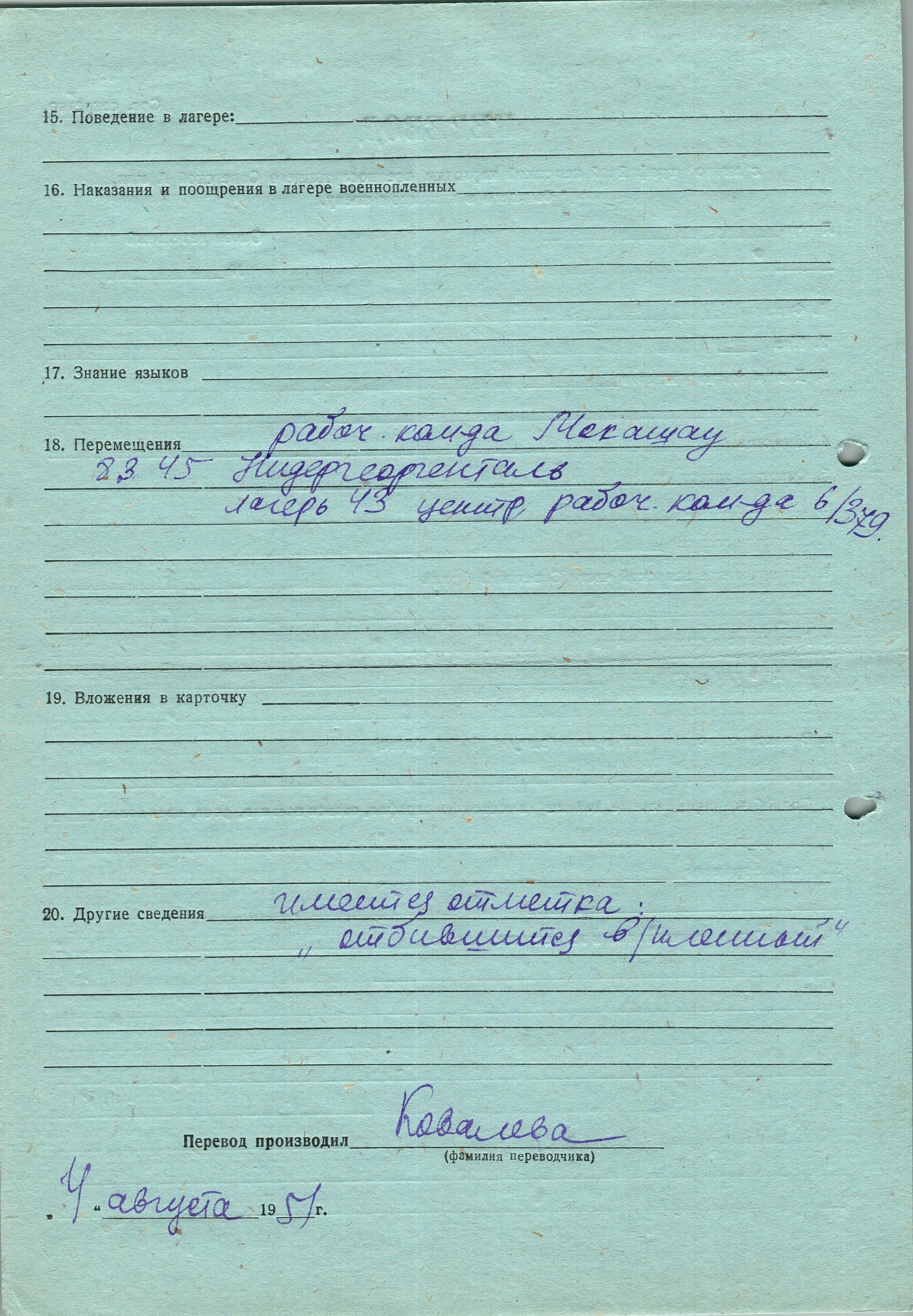 Военнопленные, трофейные карточки. Киевская обл.