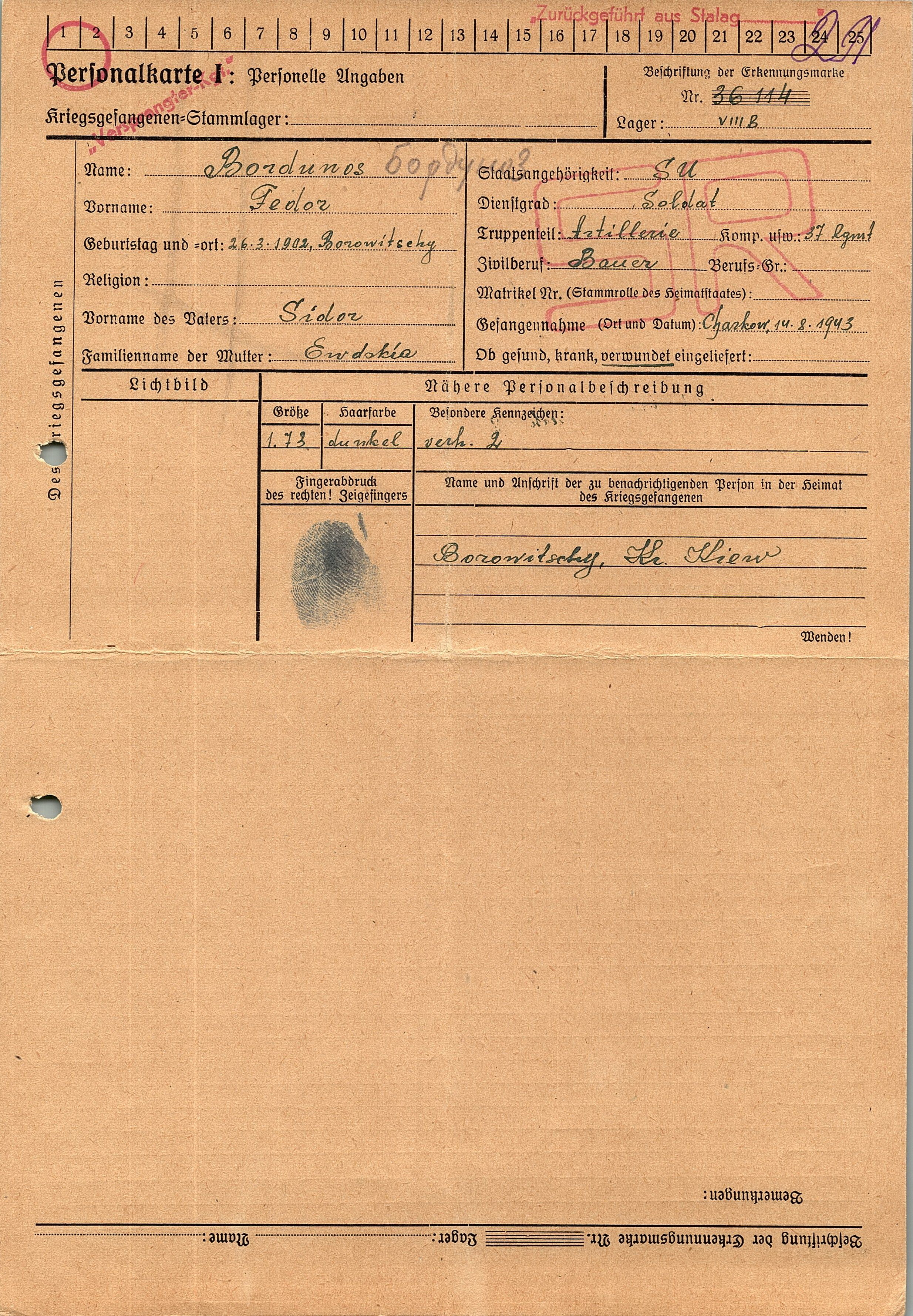 Военнопленные, трофейные карточки. Киевская обл.