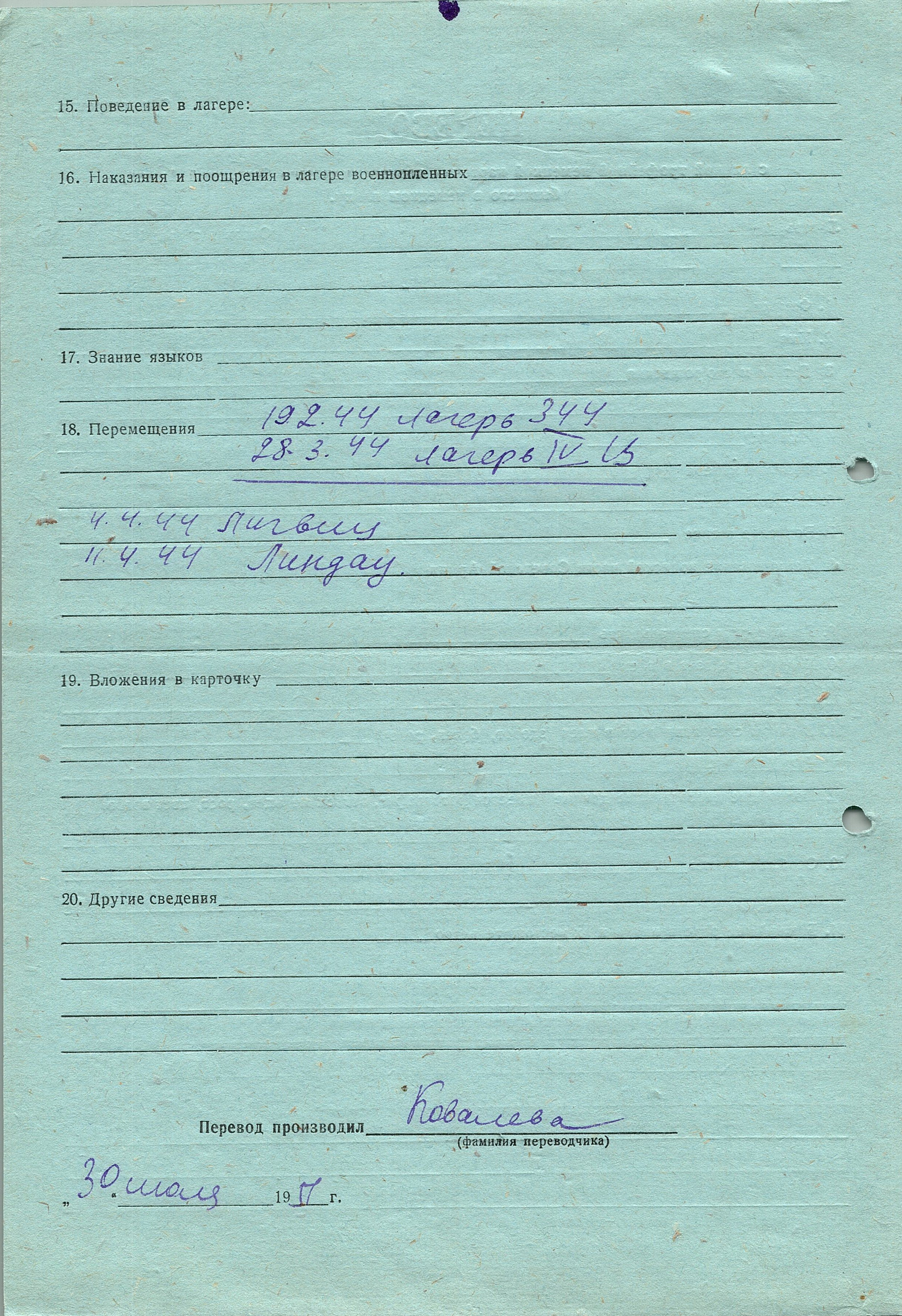 Военнопленные, трофейные карточки. Киевская обл.