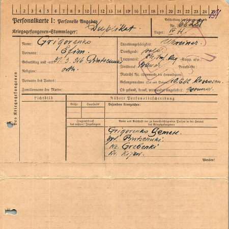 Военнопленные, трофейные карточки. Киевская обл.