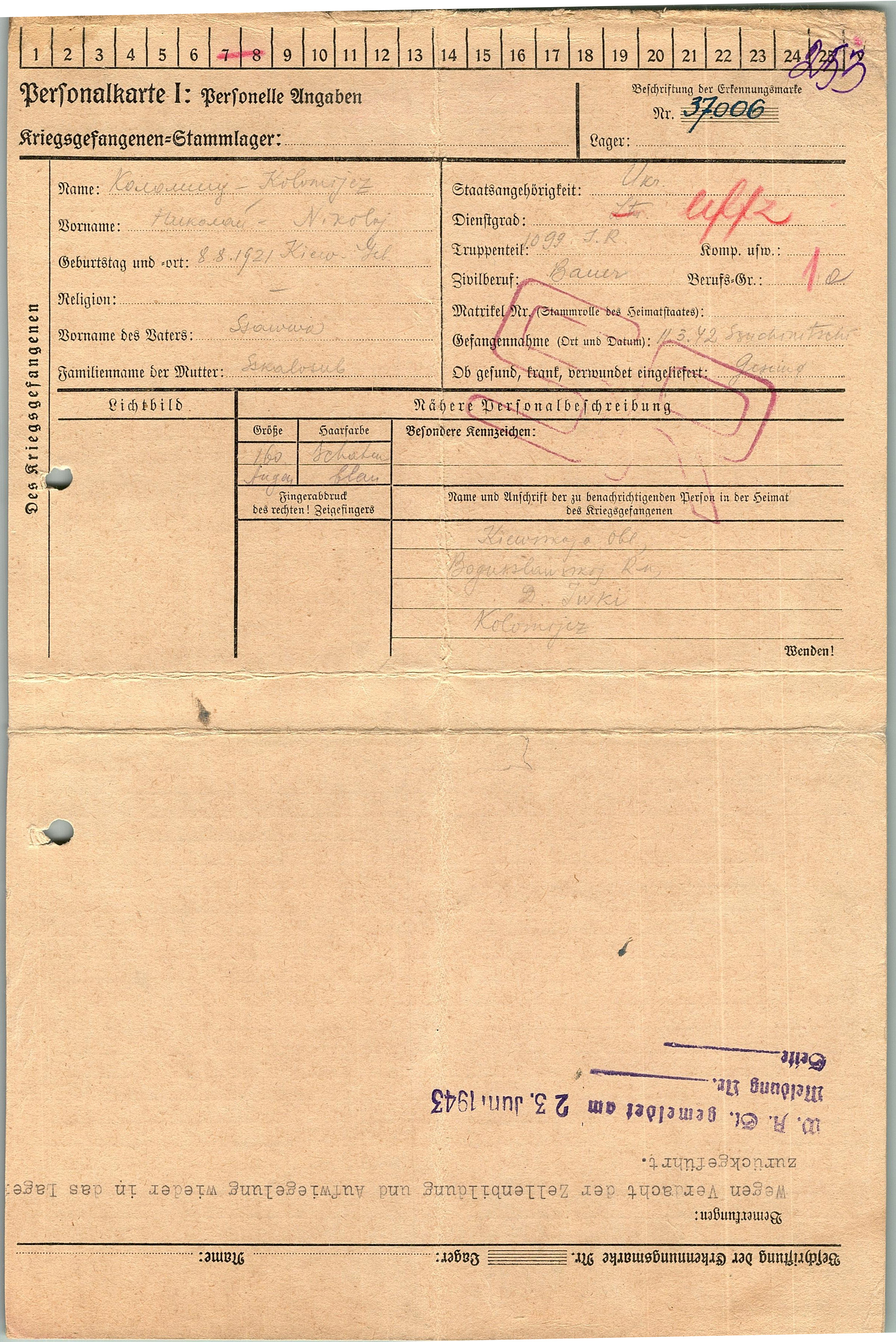 Военнопленные, трофейные карточки. Киевская обл.