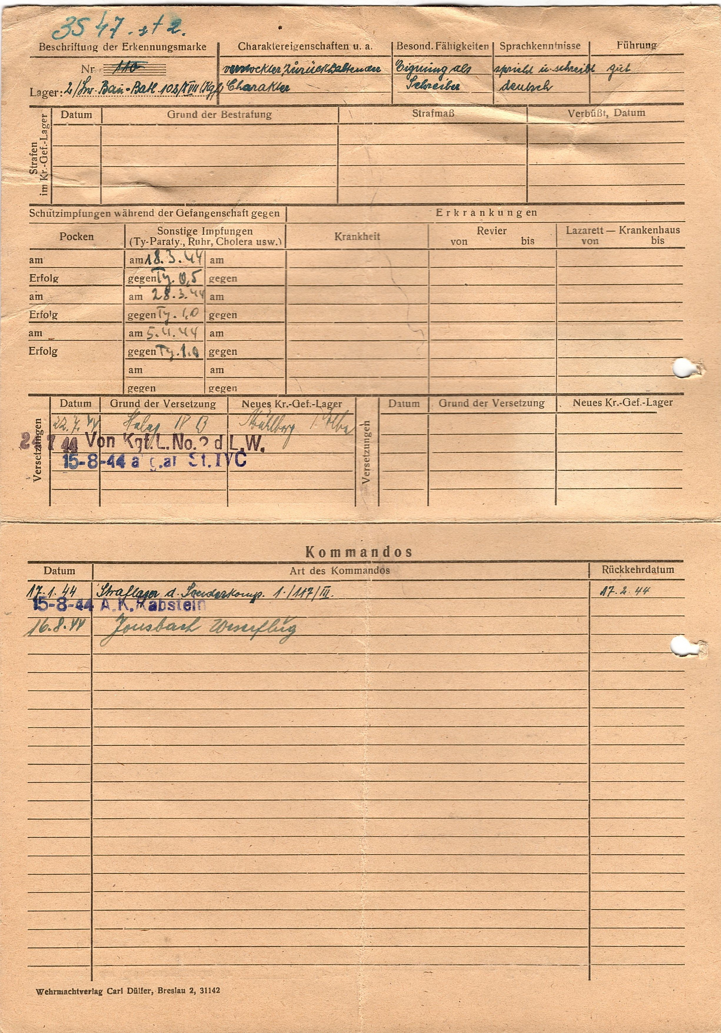 Военнопленные, трофейные карточки. Киевская обл.