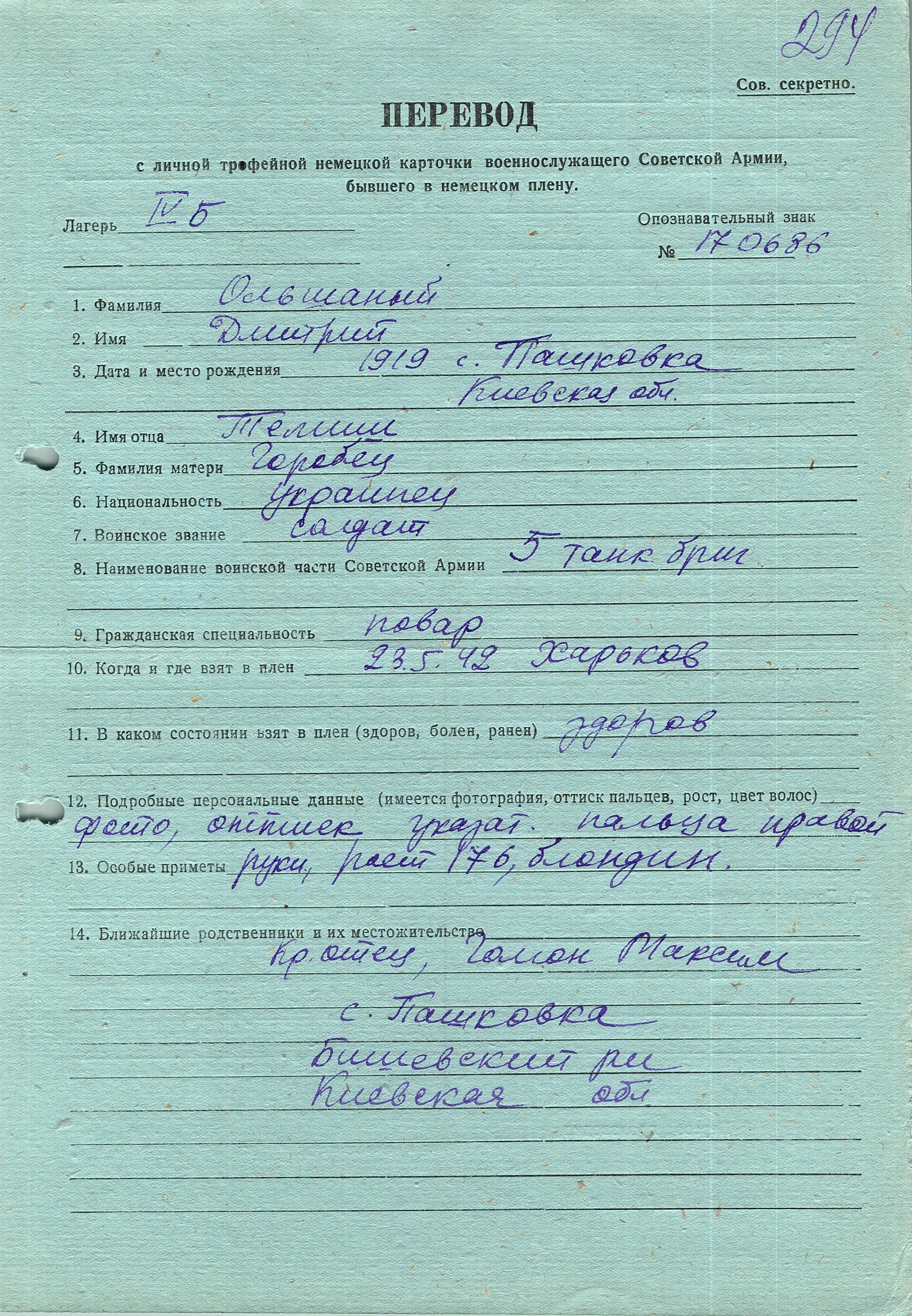 Военнопленные, трофейные карточки. Киевская обл.