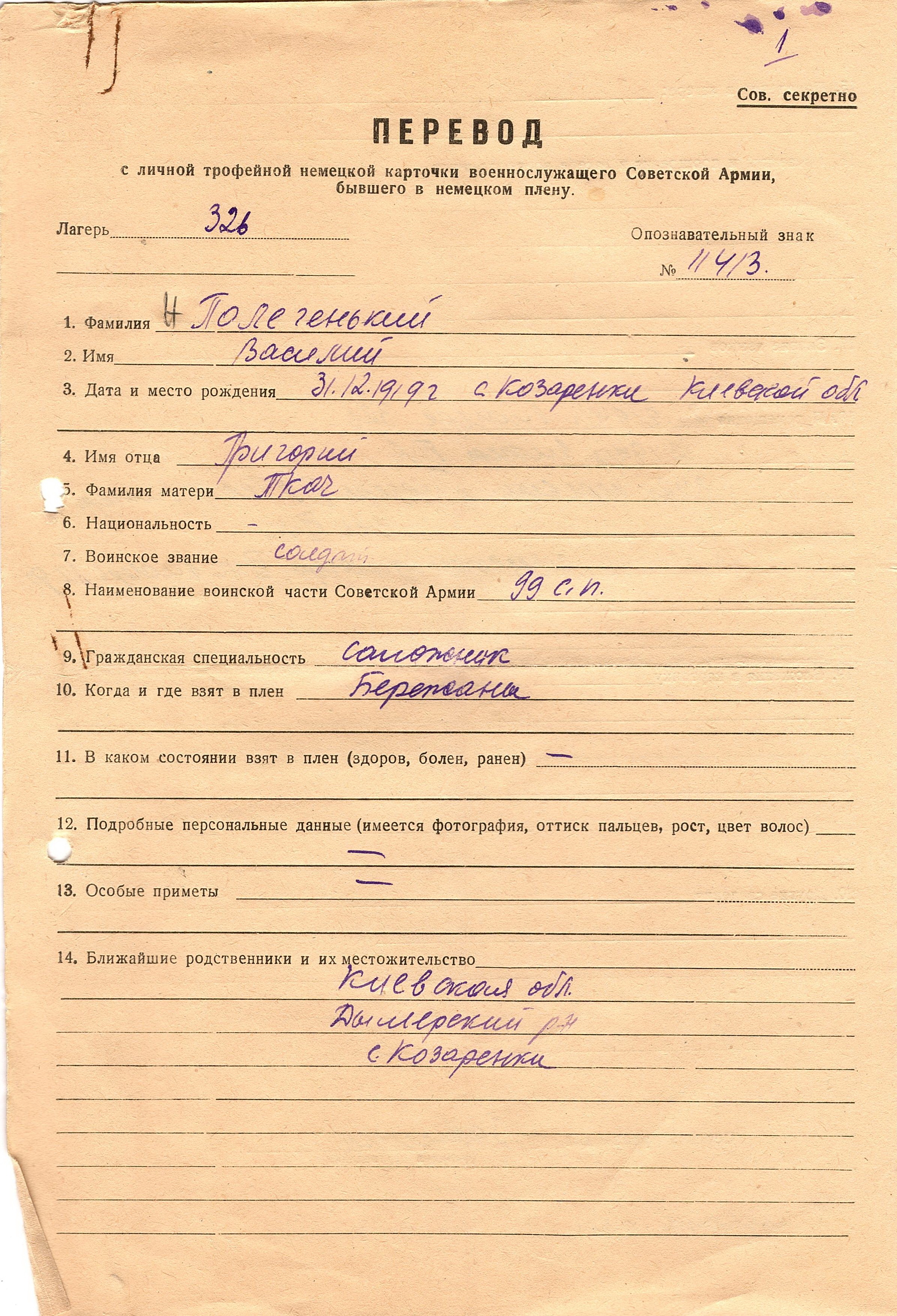 Военнопленные, трофейные карточки. Киевская обл.