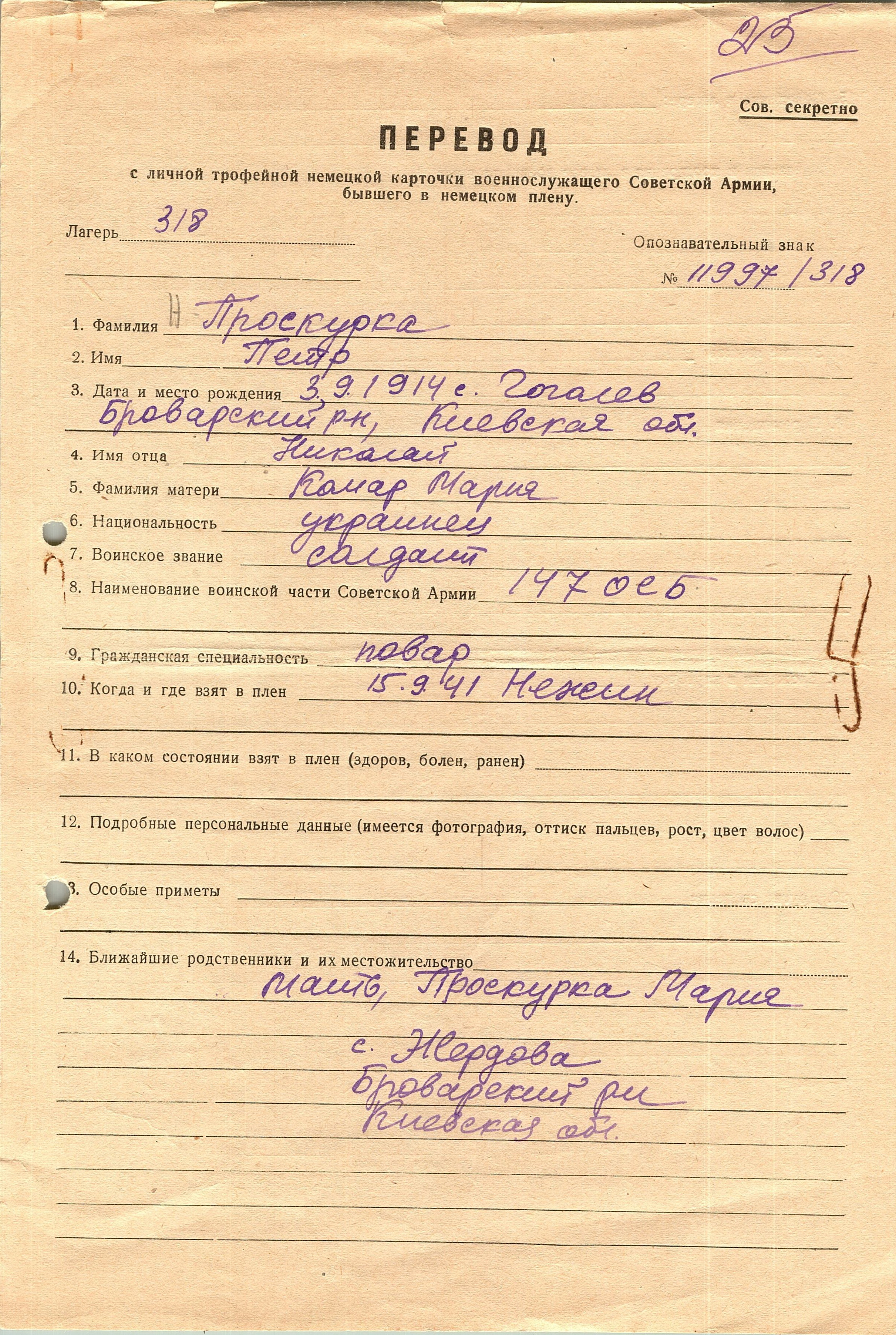 Военнопленные, трофейные карточки. Киевская обл.
