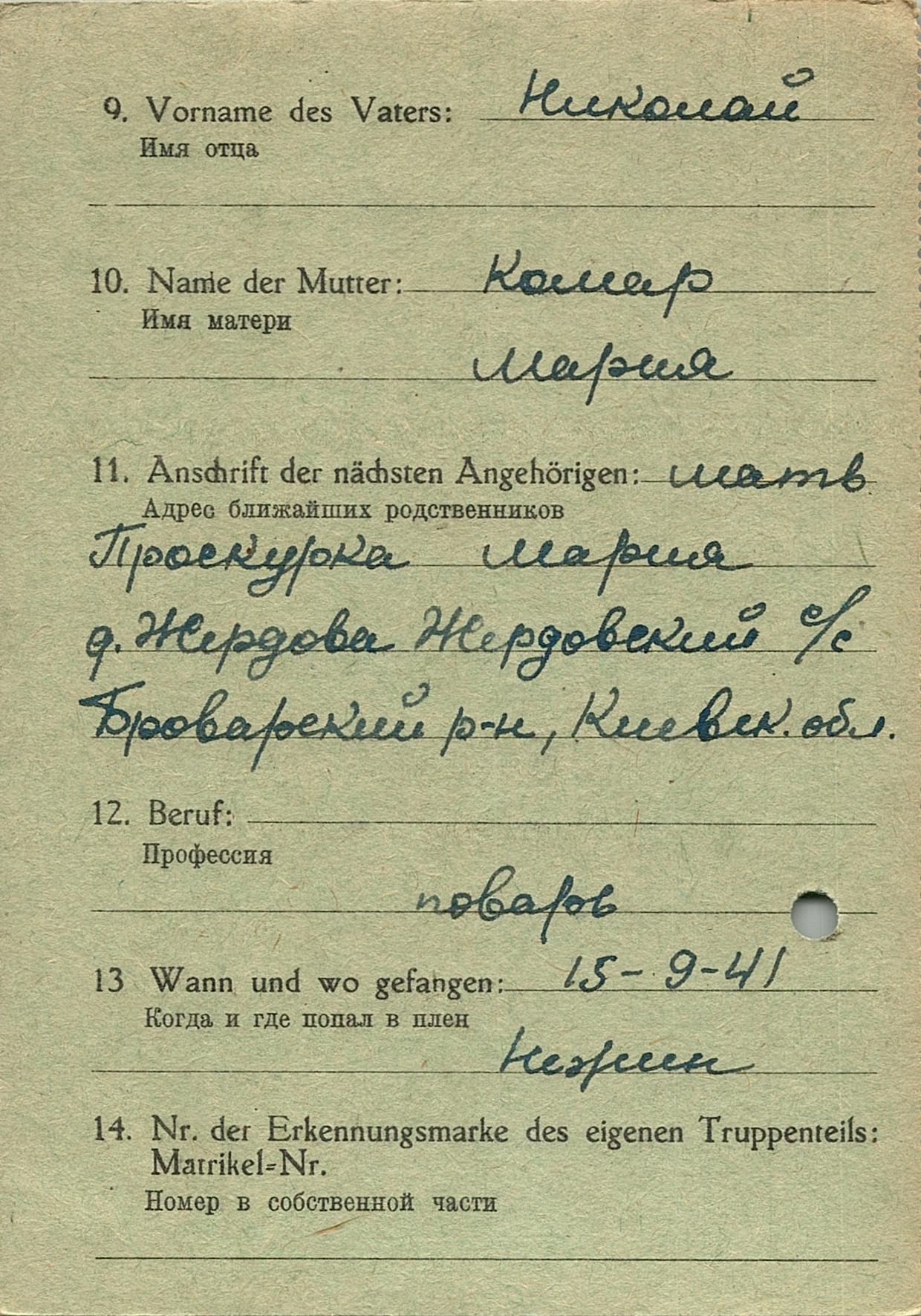 Военнопленные, трофейные карточки. Киевская обл.