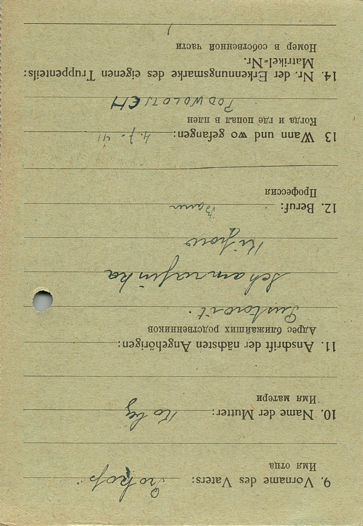 Военнопленные, трофейные карточки. Киевская обл.