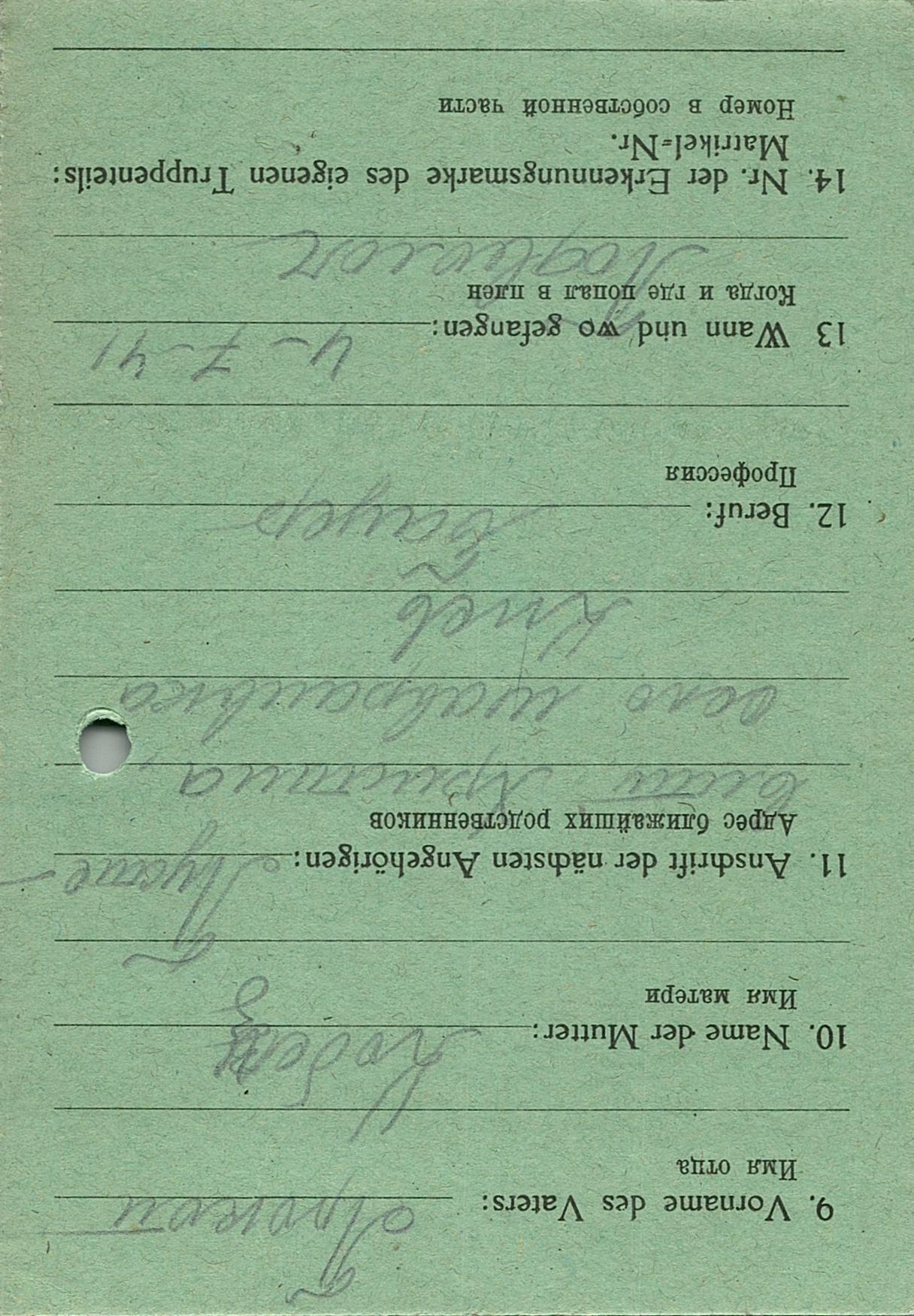 Военнопленные, трофейные карточки. Киевская обл.