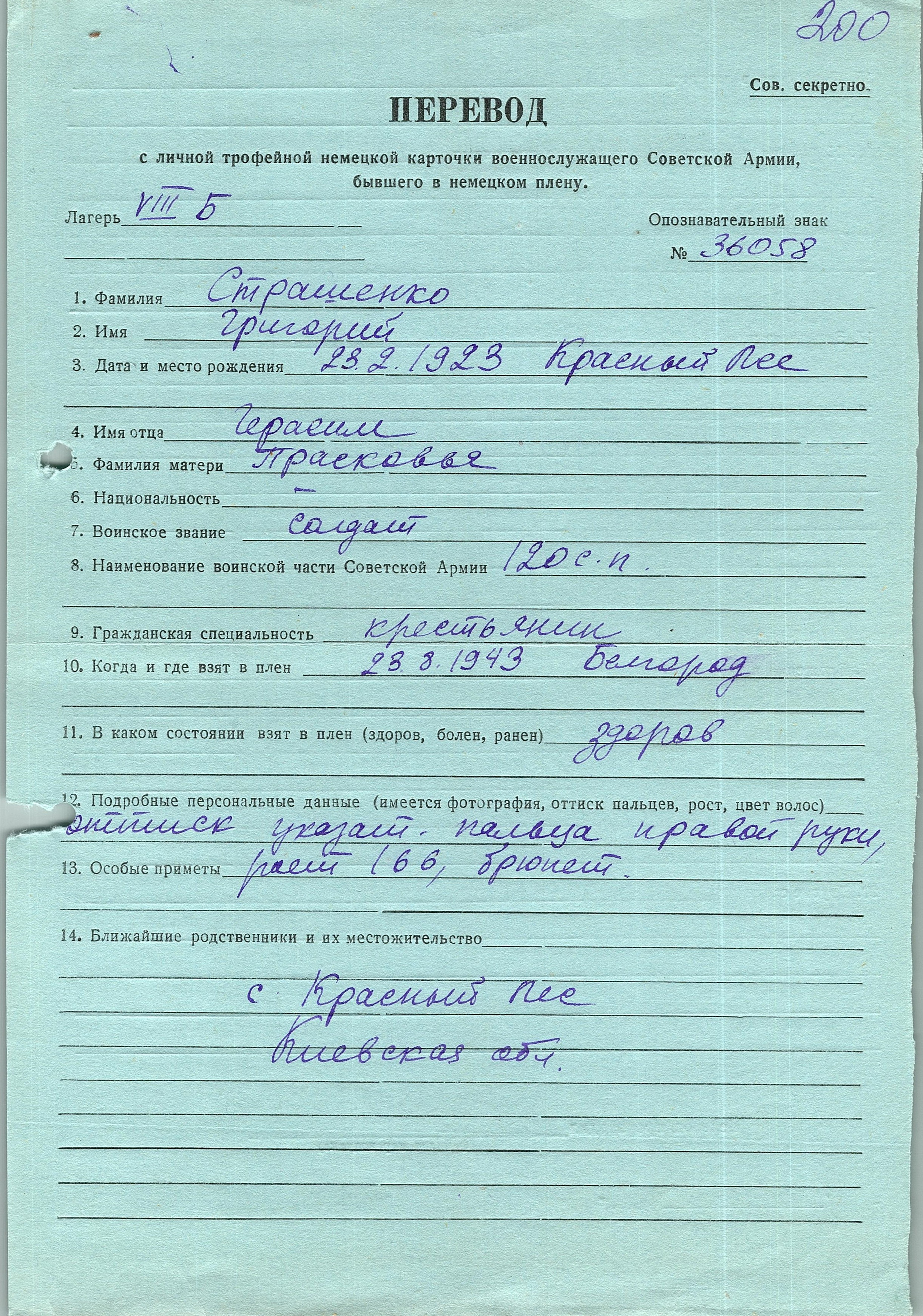 Военнопленные, трофейные карточки. Киевская обл.