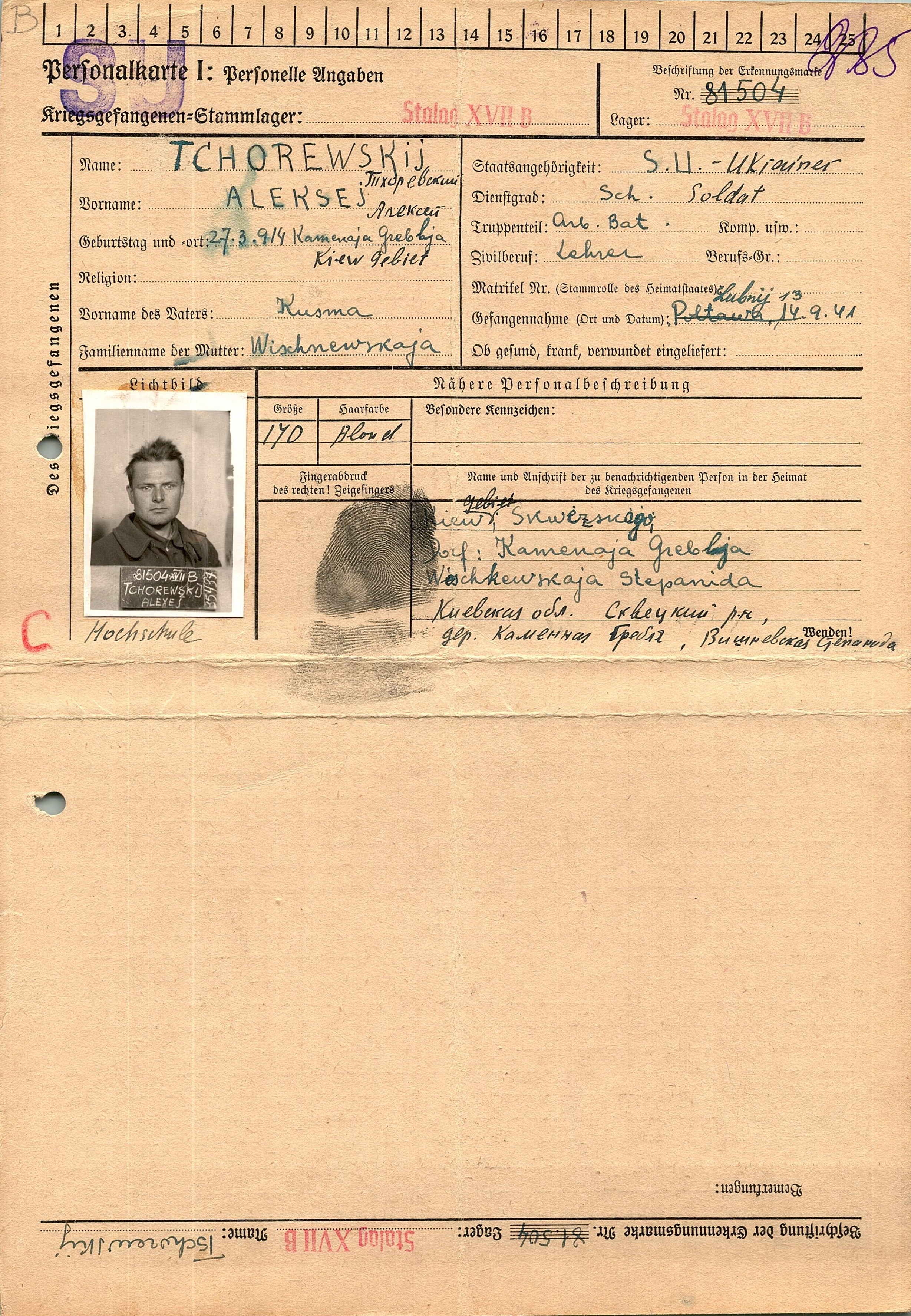Военнопленные, трофейные карточки. Киевская обл.