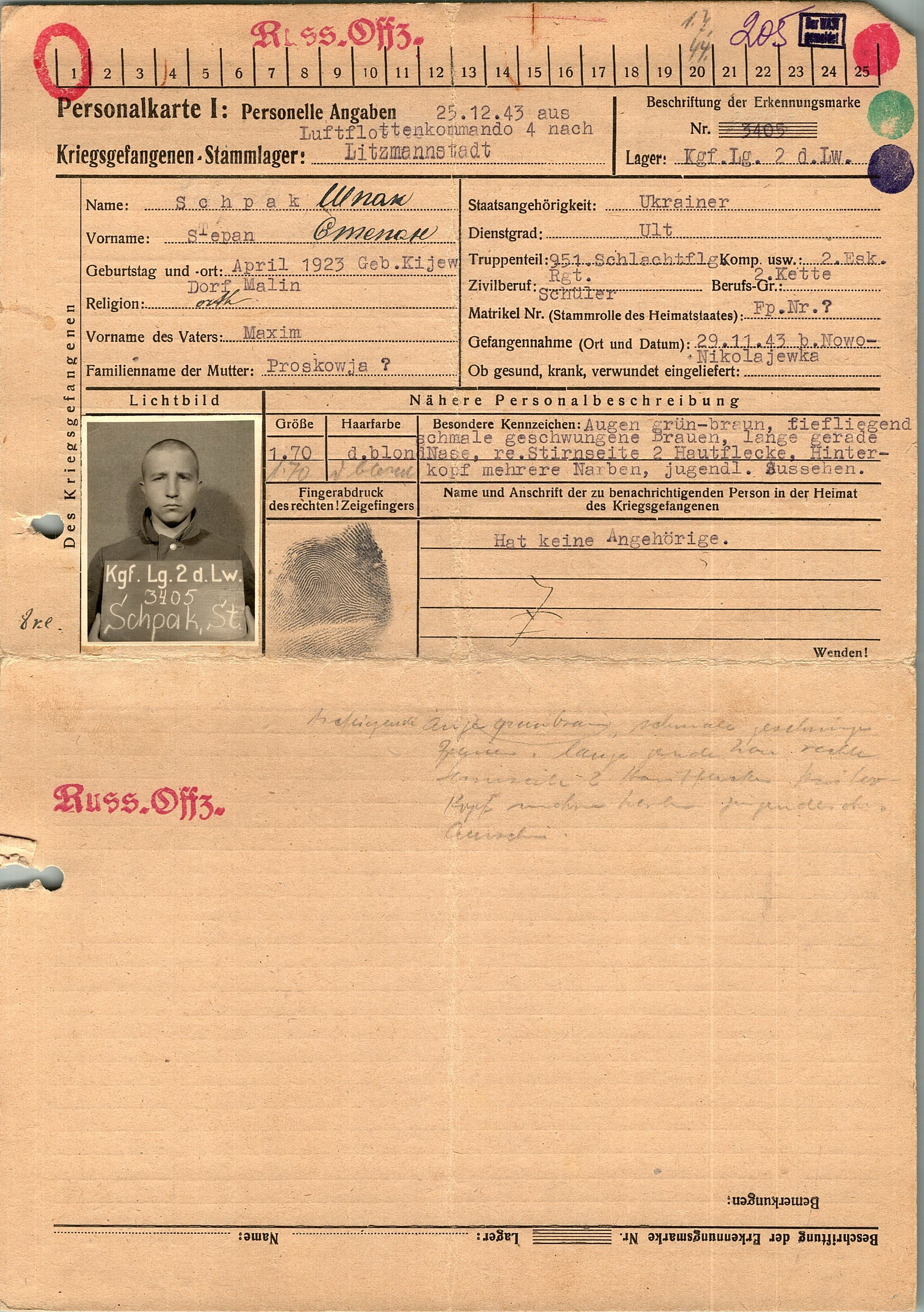 Военнопленные, трофейные карточки. Киевская обл.