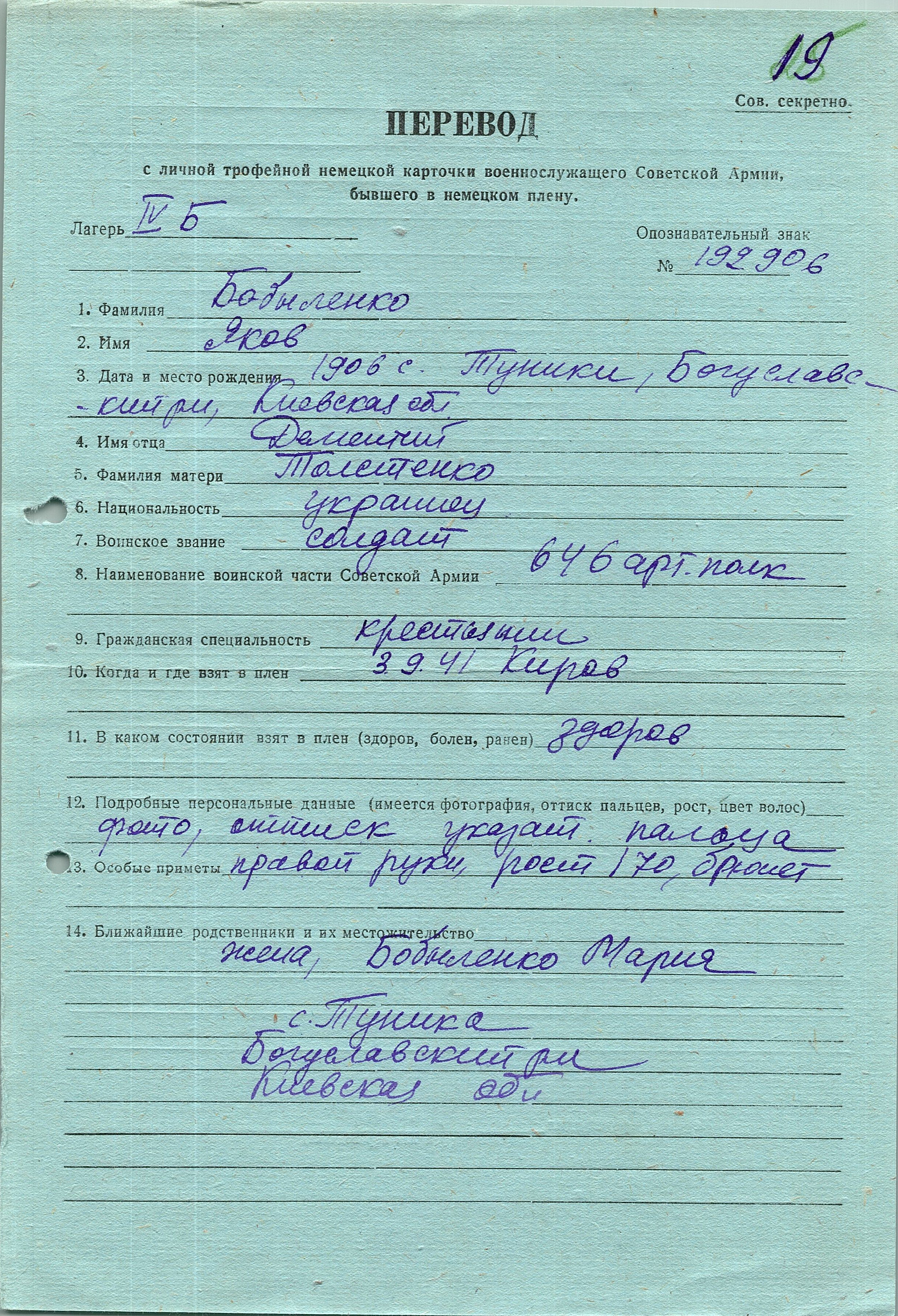 Военнопленные, трофейные карточки. Киевская обл.