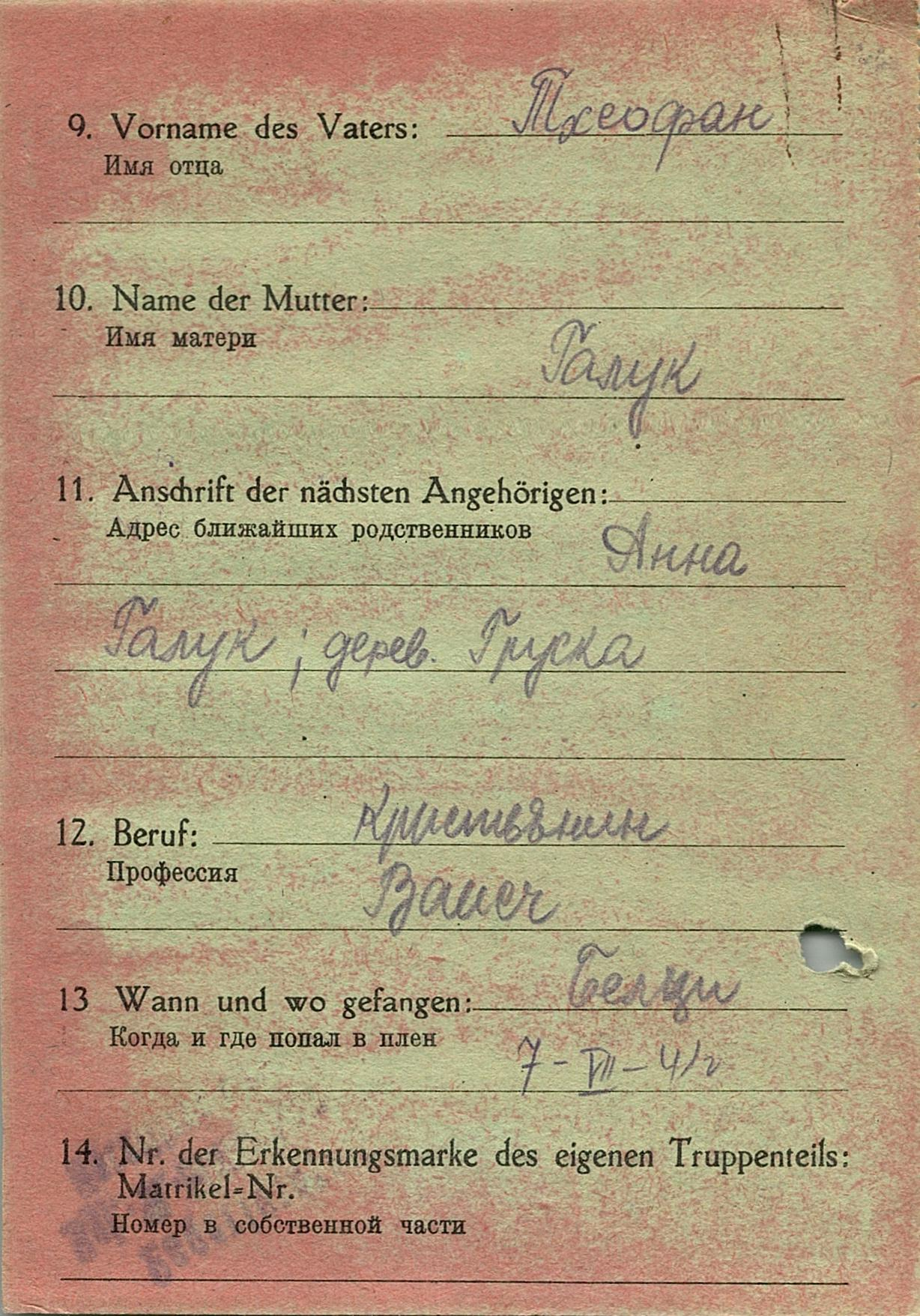 Военнопленные, трофейные карточки. Киевская обл.