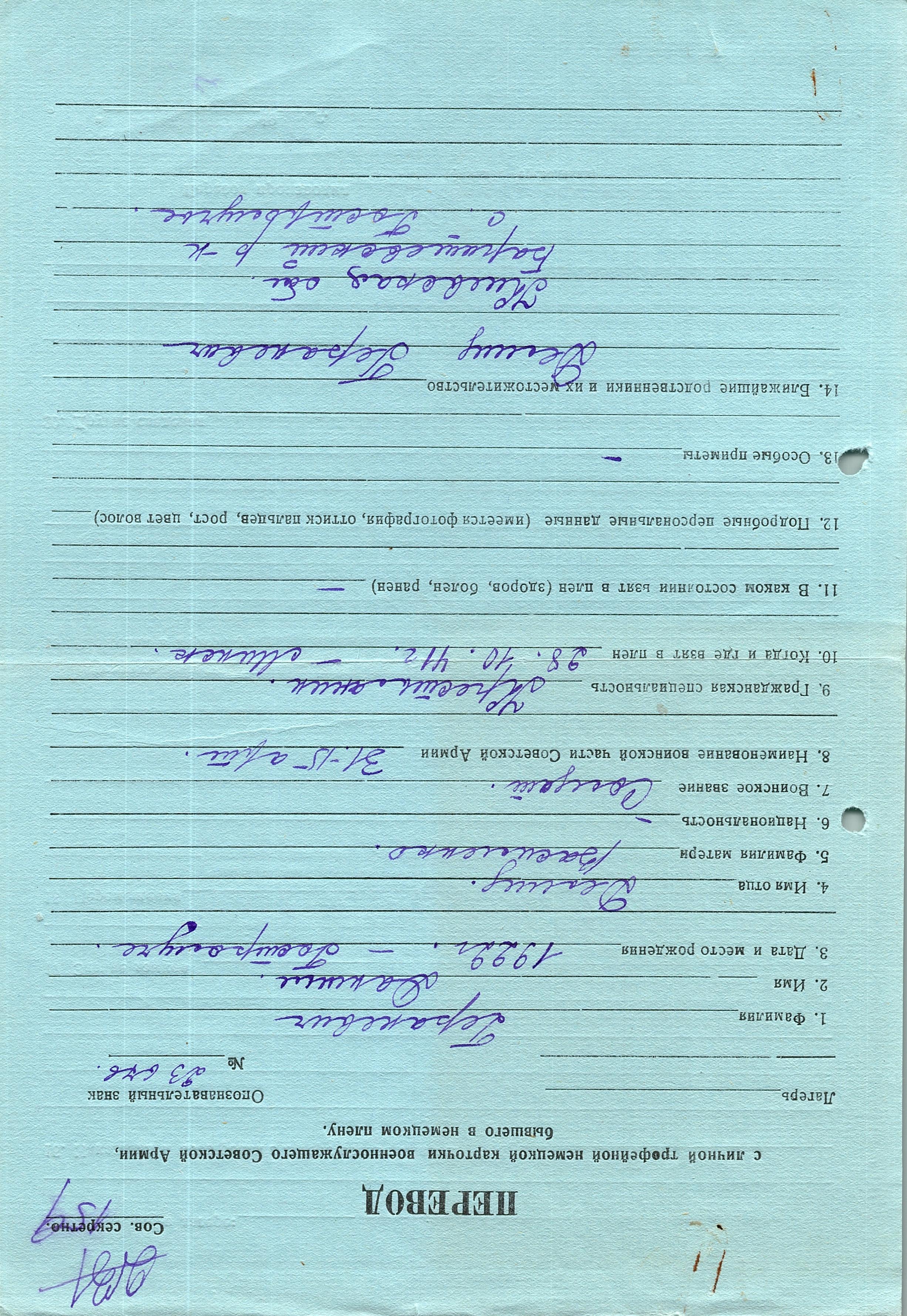Военнопленные, трофейные карточки. Киевская обл.