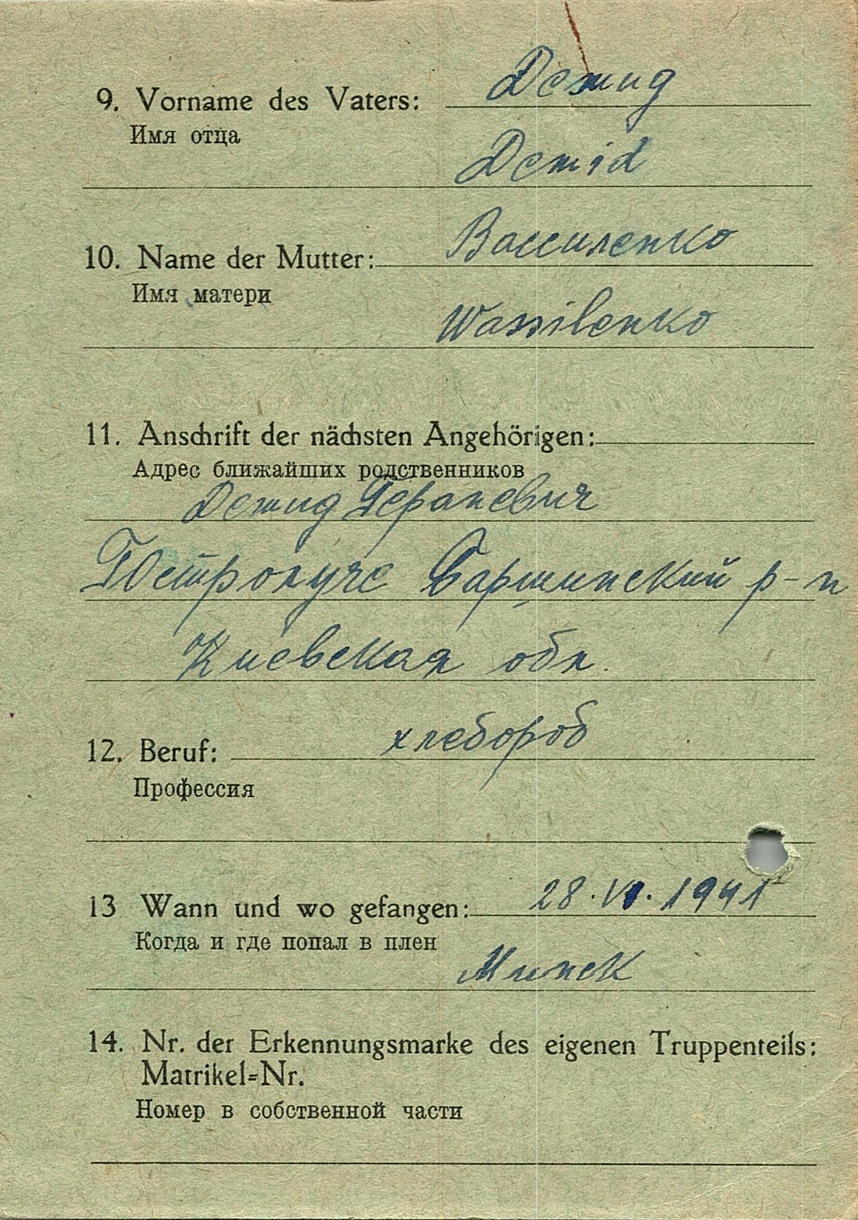 Военнопленные, трофейные карточки. Киевская обл.