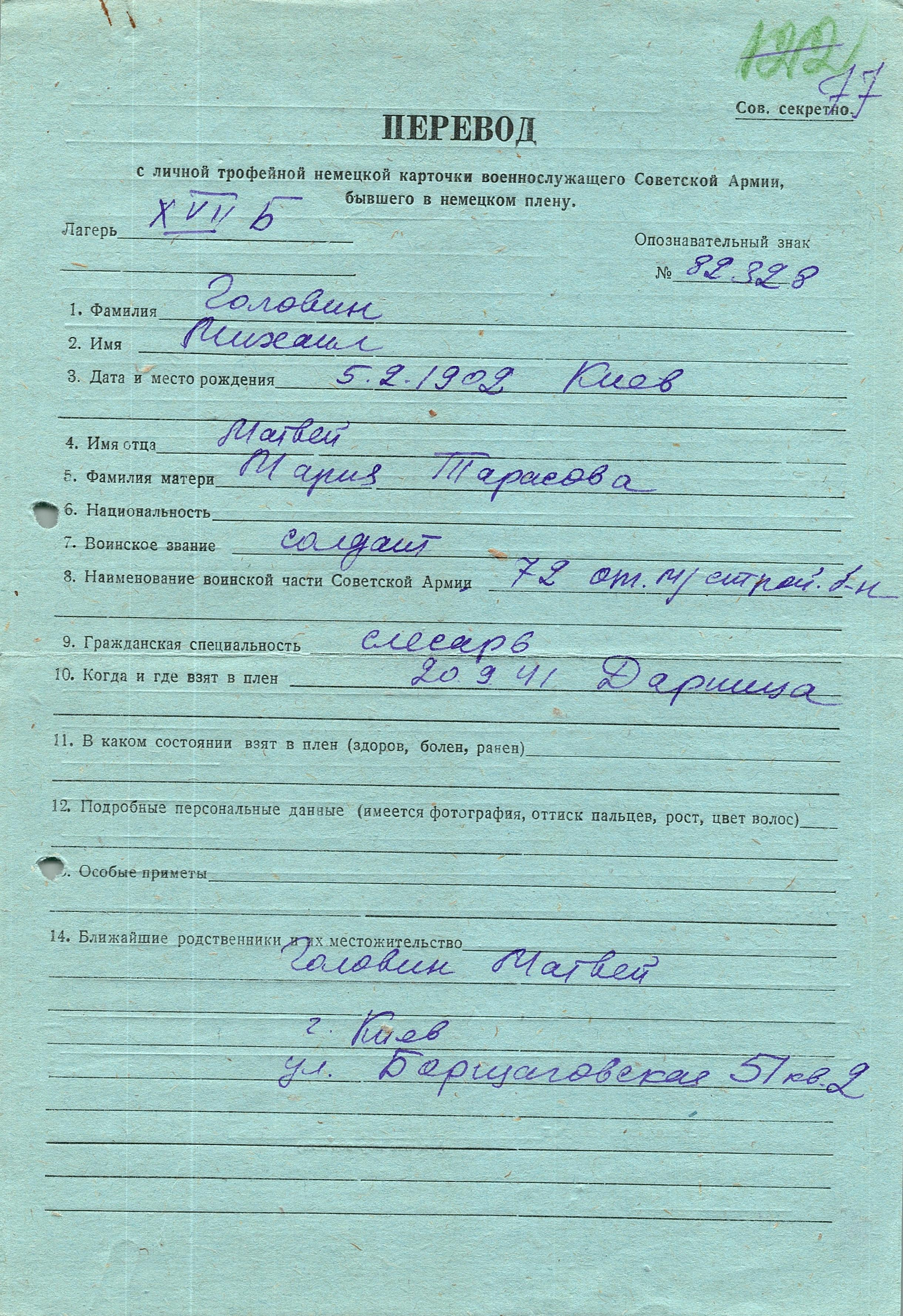 Военнопленные, трофейные карточки. Киевская обл.