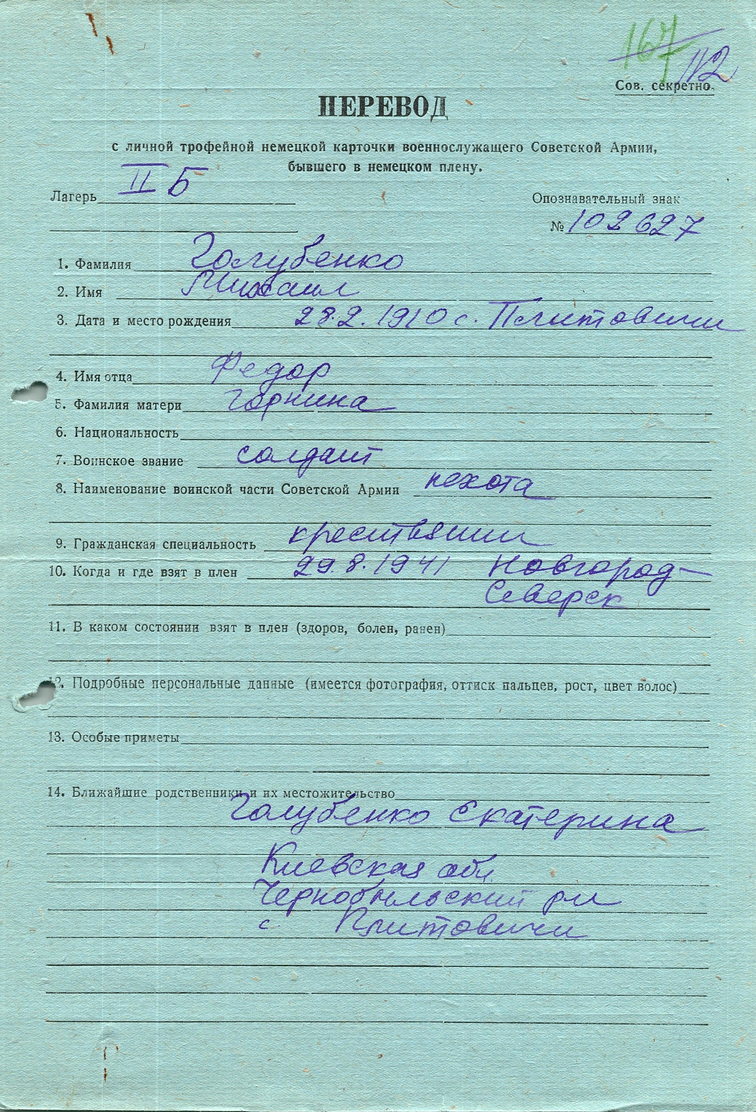 Военнопленные, трофейные карточки. Киевская обл.
