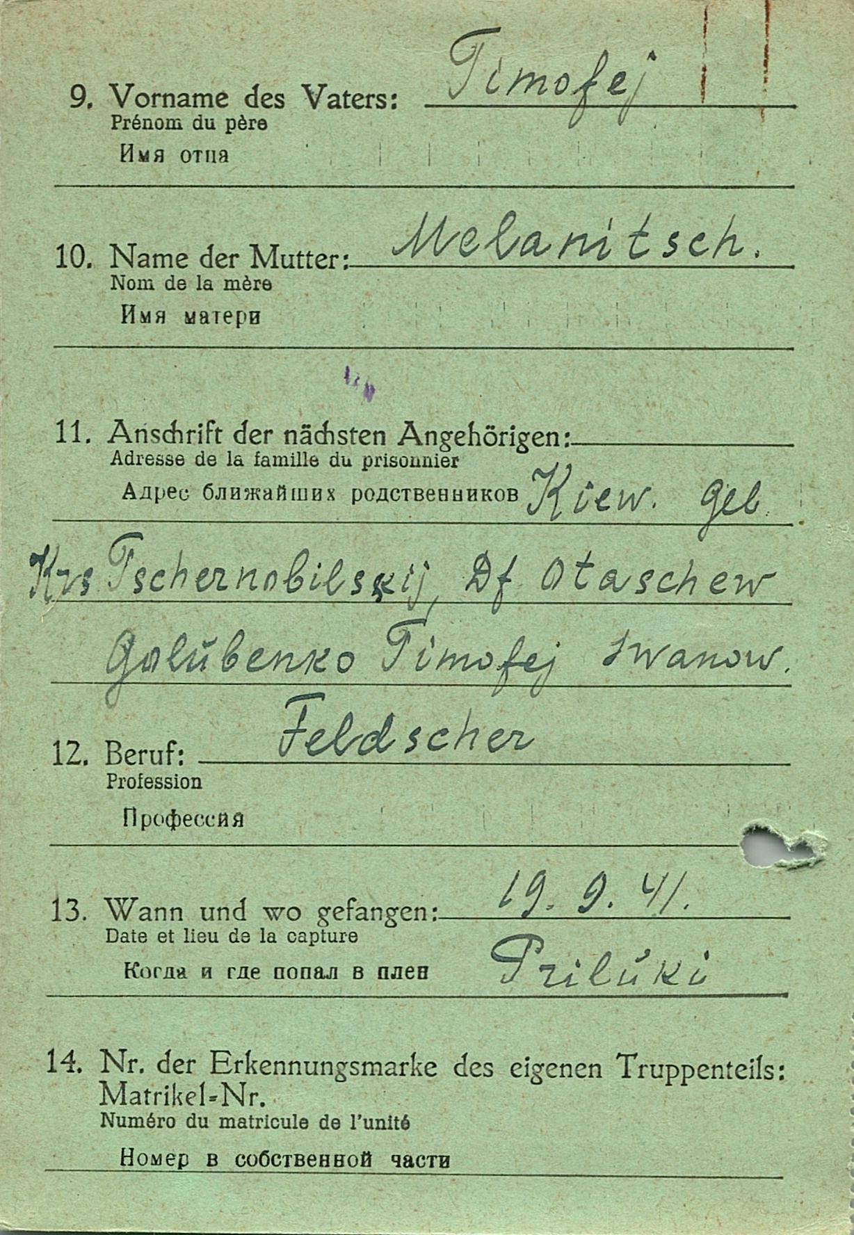 Военнопленные, трофейные карточки. Киевская обл.