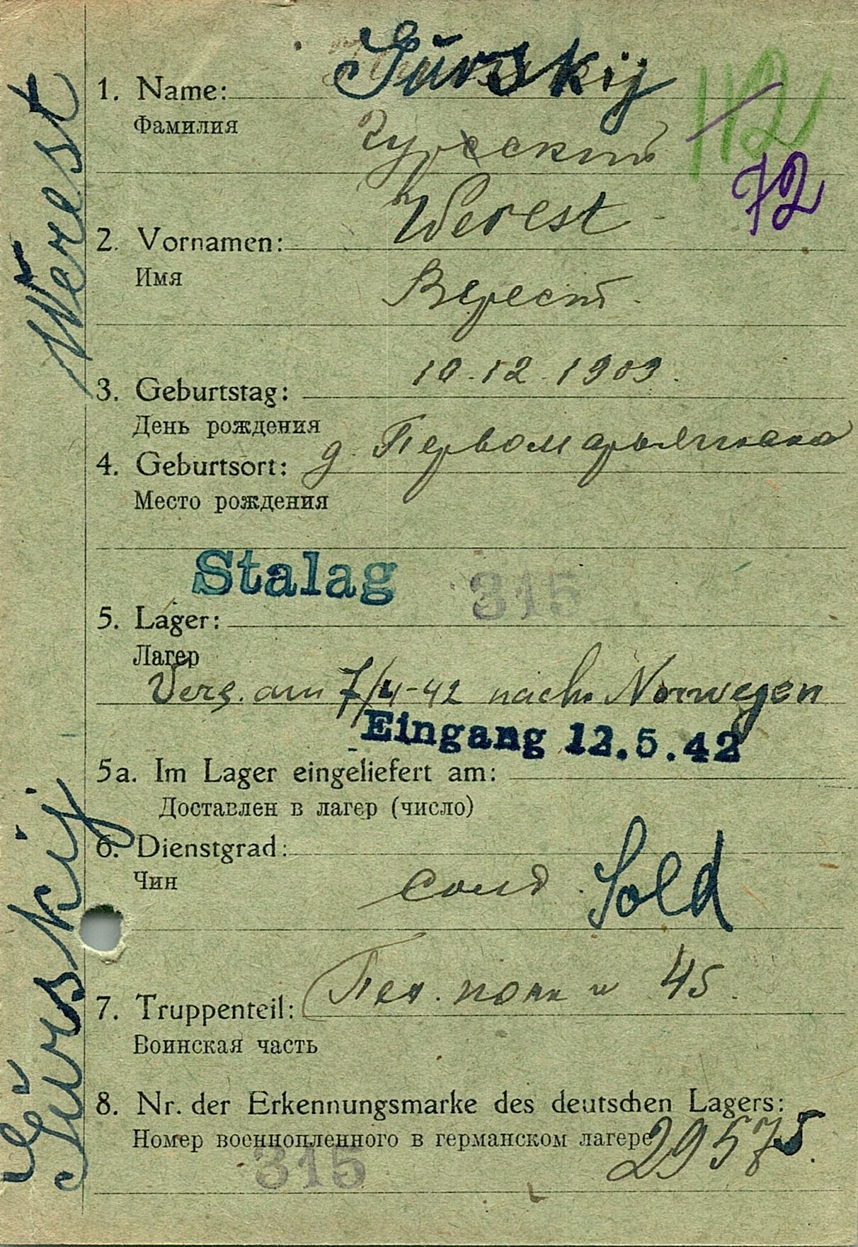 Военнопленные, трофейные карточки. Киевская обл.