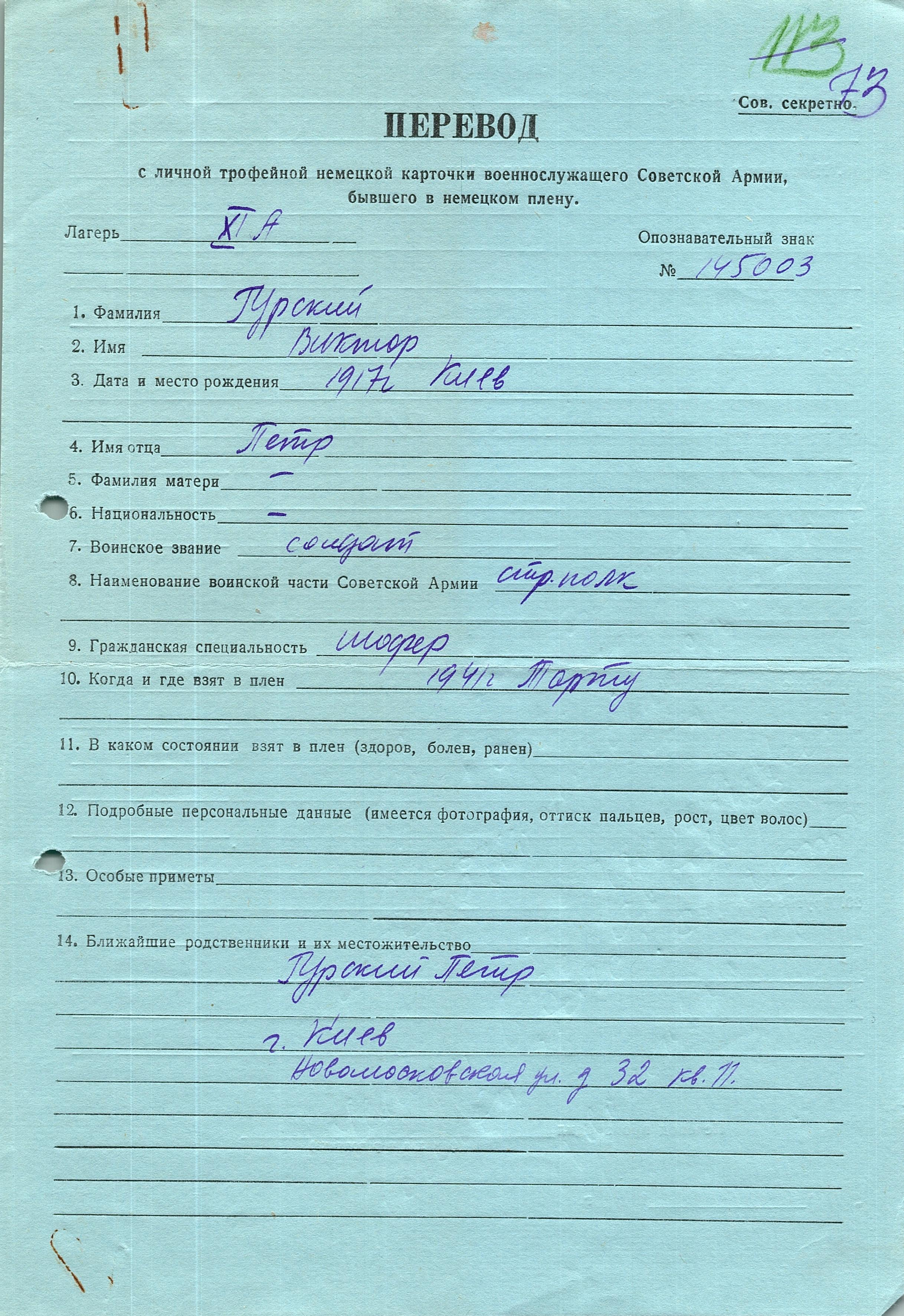 Военнопленные, трофейные карточки. Киевская обл.