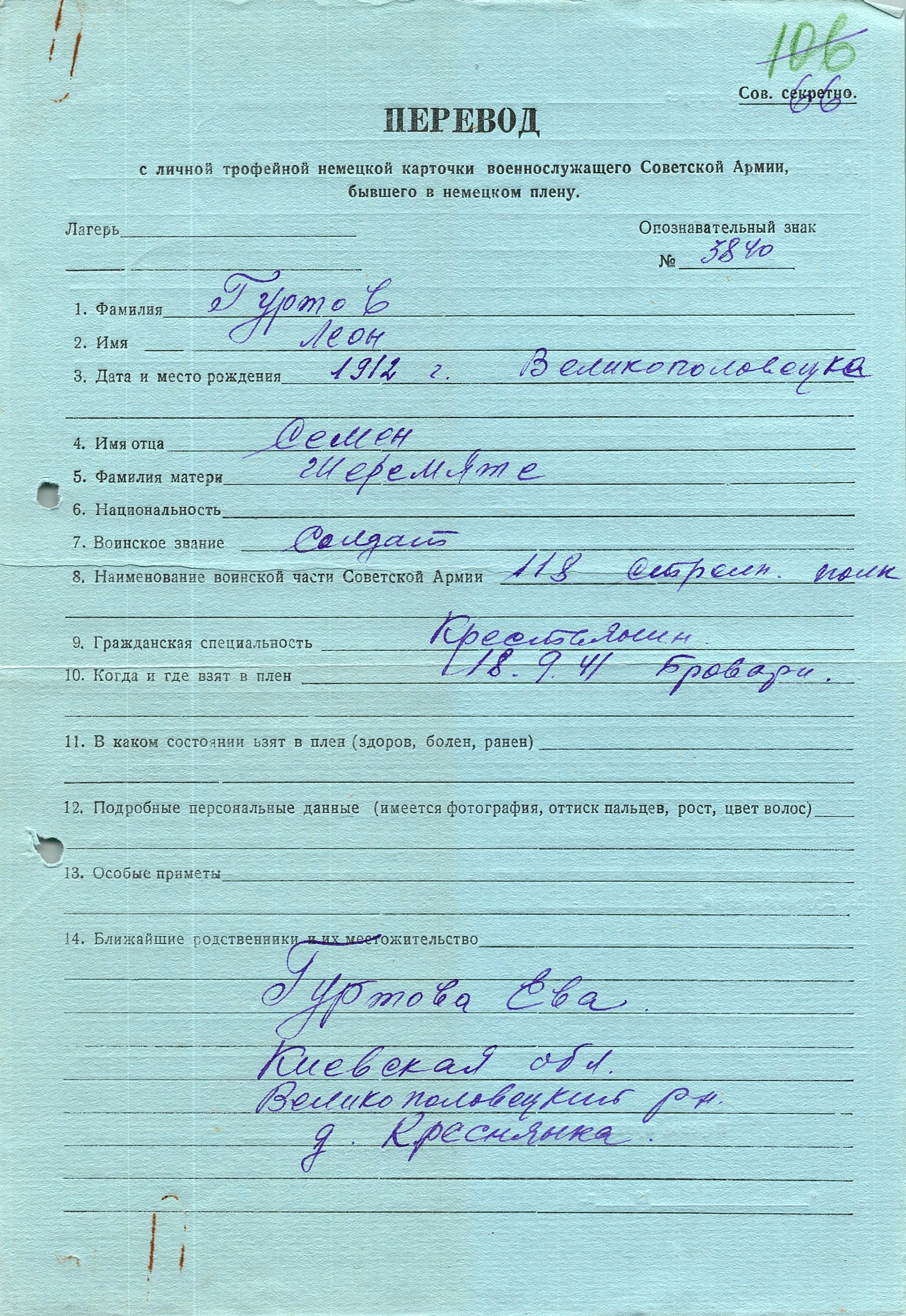 Военнопленные, трофейные карточки. Киевская обл.